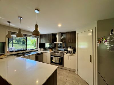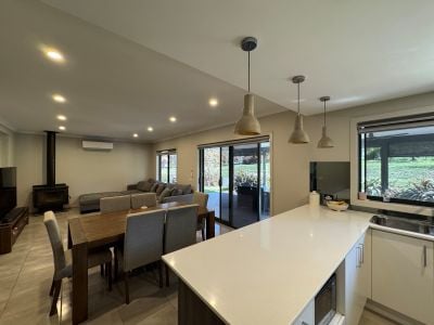 Designed for easy living, the open-plan kitchen, dining and living area is the heart of the home, complete with a 900mm gas cooktop, electric oven, dishwasher, wood heater and split system. A large rumpus room adds flexibility perfect as a second living space, playroom or home office. The dining area opens to a spacious undercover entertaining zone, ideal for hosting family and friends.