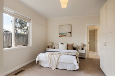 This charming three bedroom period home combines timeless character with modern comfort in a quiet Campbells Creek location, just minutes from Castlemaine's town centre, local schools and bushland walking trails. The north facing living room is filled with natural light and features a split system for year round comfort, flowing through to the dining area and central kitchen, which offers generous storage, a pantry, dishwasher and a freestanding gas cooktop with oven. A second sunlit living area opens via sliding doors to a covered alfresco deck, perfect for relaxed entertaining throughout the seasons. The main bedroom includes built in robes and a private ensuite with bath, shower, vanity and toilet, while two additional bedrooms each offer built in robes and split systems. A central bathroom with a shower over bath, a separate toilet and a full laundry add further convenience. Comfort is ensured through four split systems and gas ducted heating. Outside, the generous backyard provides plenty of space and includes a water tank and shed.