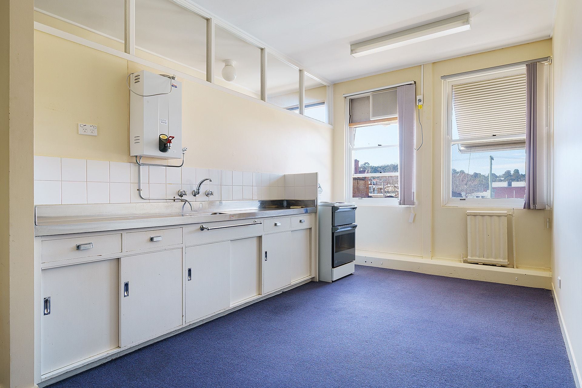 The current floorplan consists of a street-level entry leading into a spacious, open foyer/ meeting space, eleven offices/ meeting rooms, two kitchen and dining spaces, two separate bathrooms, one with an ambulant toilet and a built-in safe. Internal stairs lead to the second level with a current set up of 18 offices/ meeting rooms, a kitchen and dining space and two bathrooms.