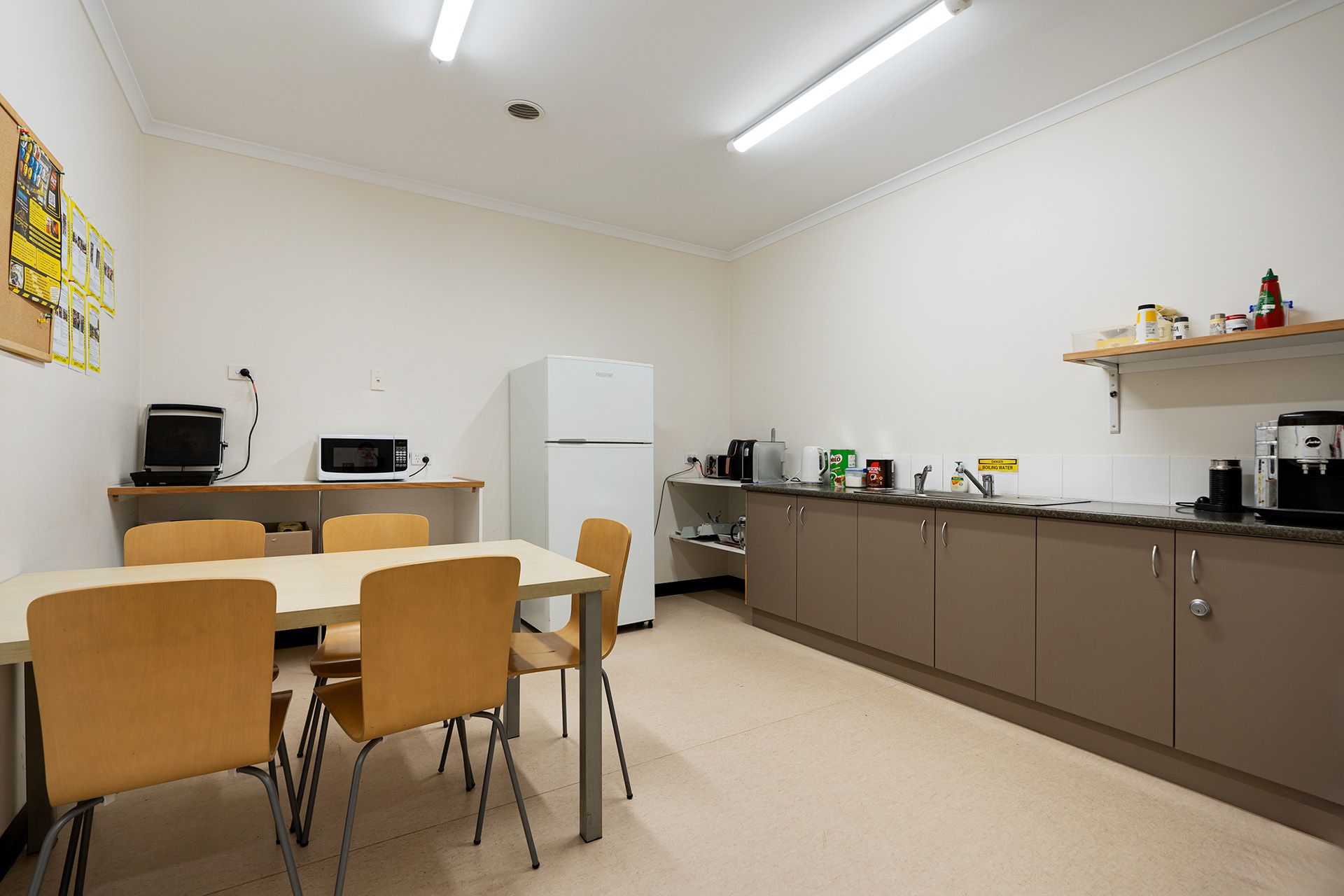 Accessible bathroom, male and female toilets, lunchroom