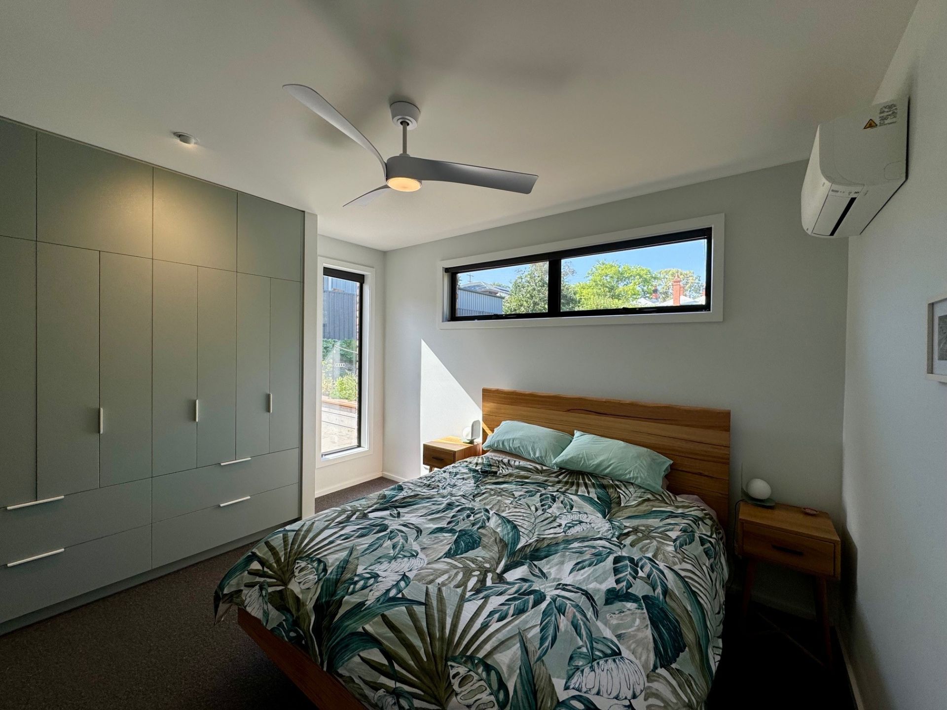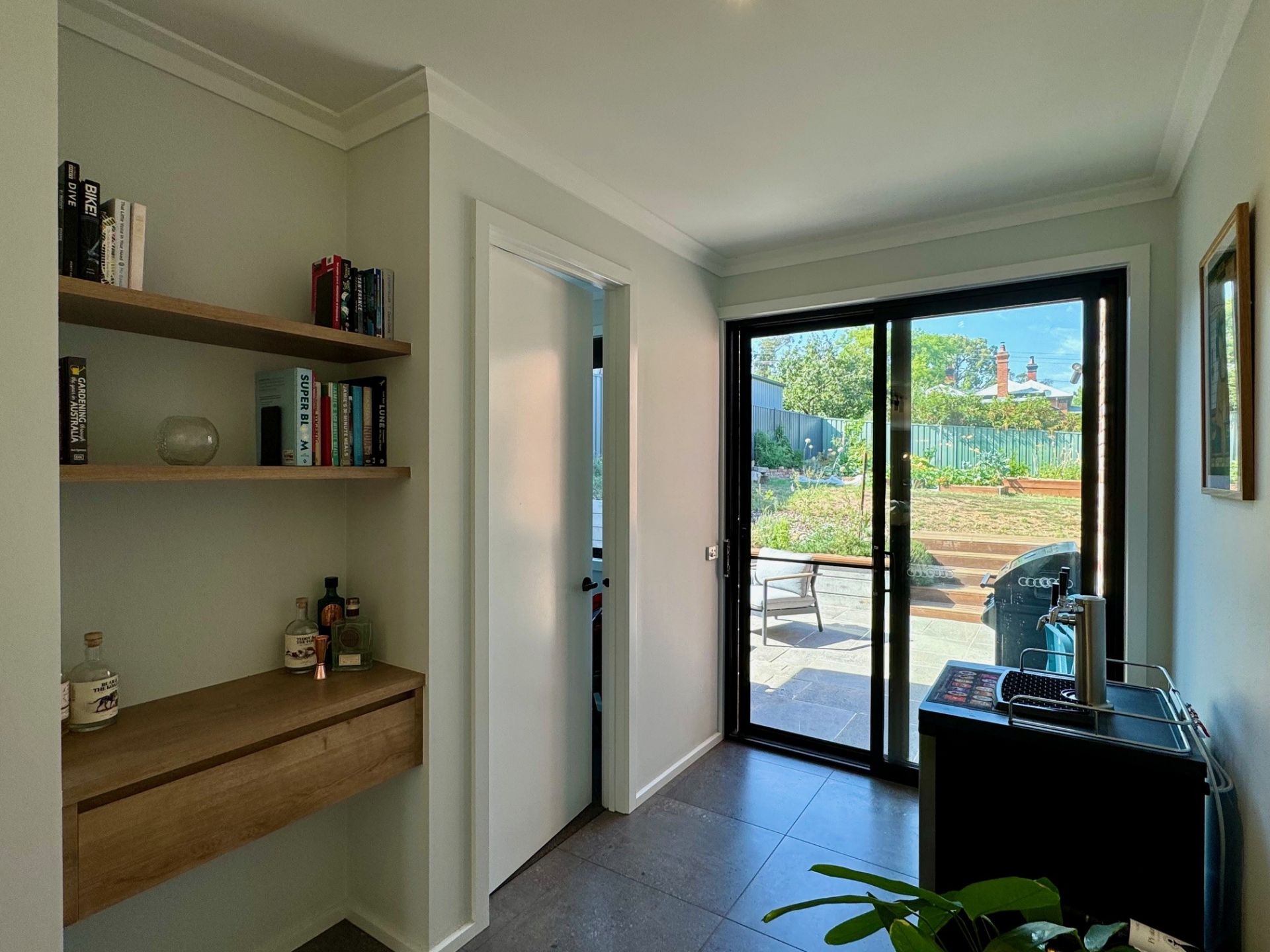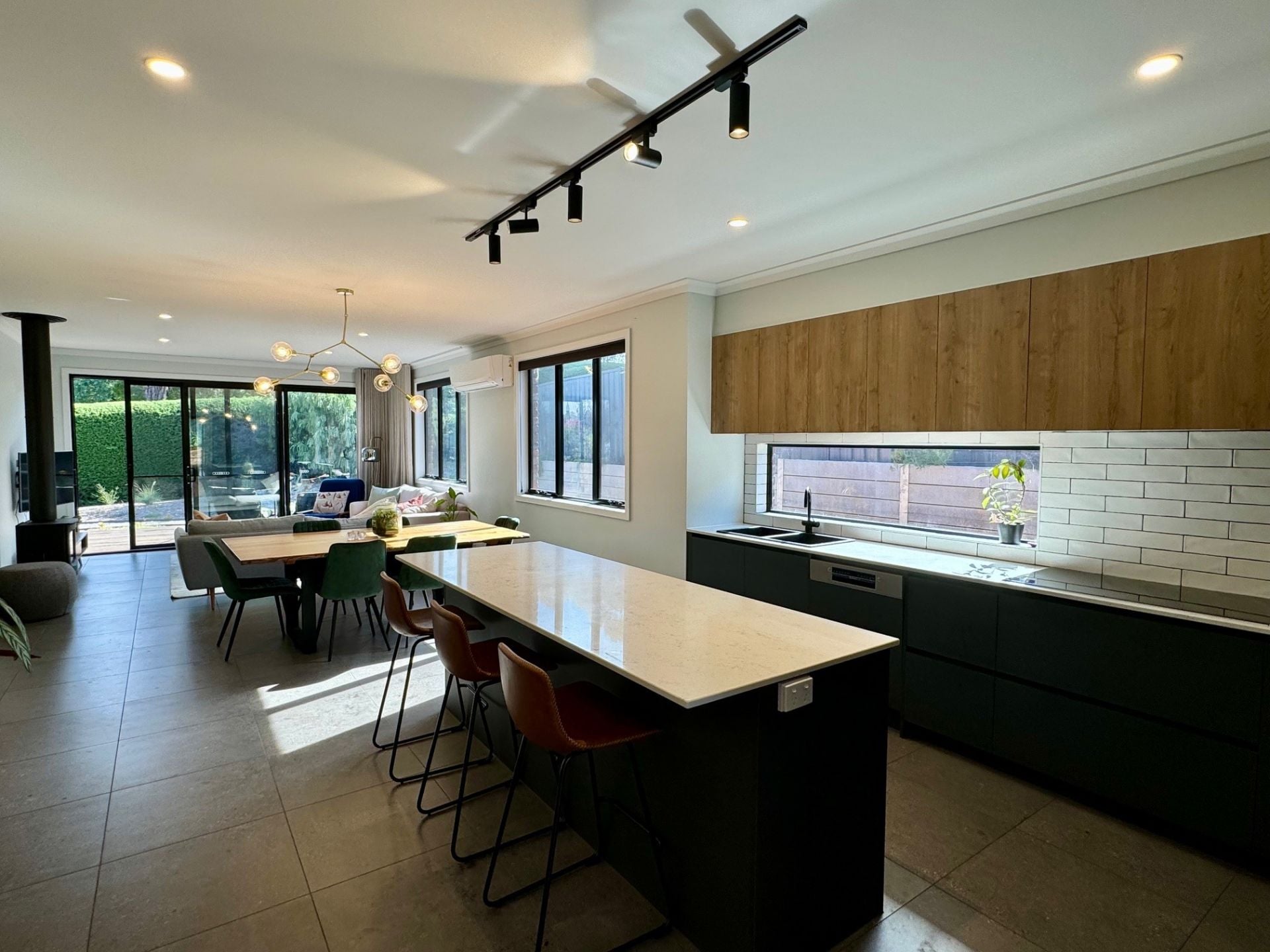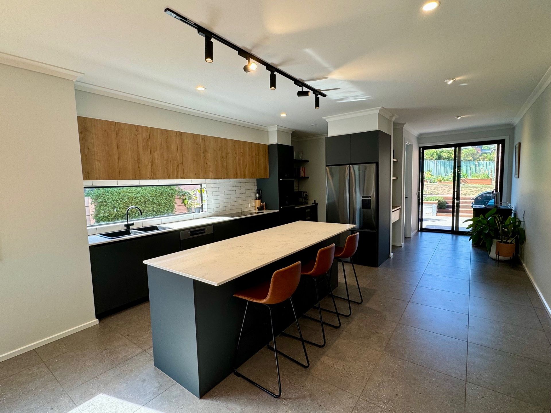 The open-plan kitchen and living area is designed for modern living with access to a north facing deck. A galley-style kitchen that boasts a picture window, island bench, walk-in pantry, electric stove top and oven, and a dishwasher-perfect for entertaining or relaxing at home. A dedicated study nook provides an ideal space for working or hobbies, while ample storage throughout keeps everything organised.
