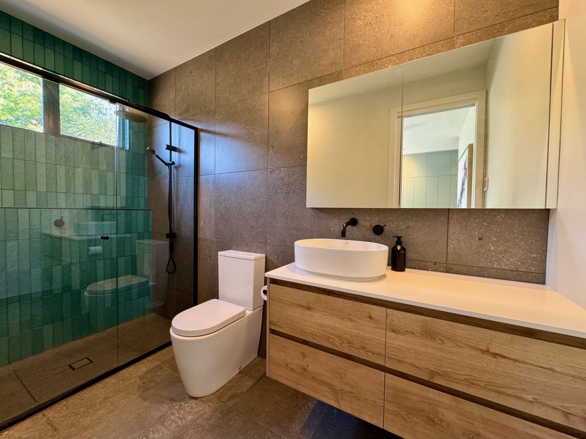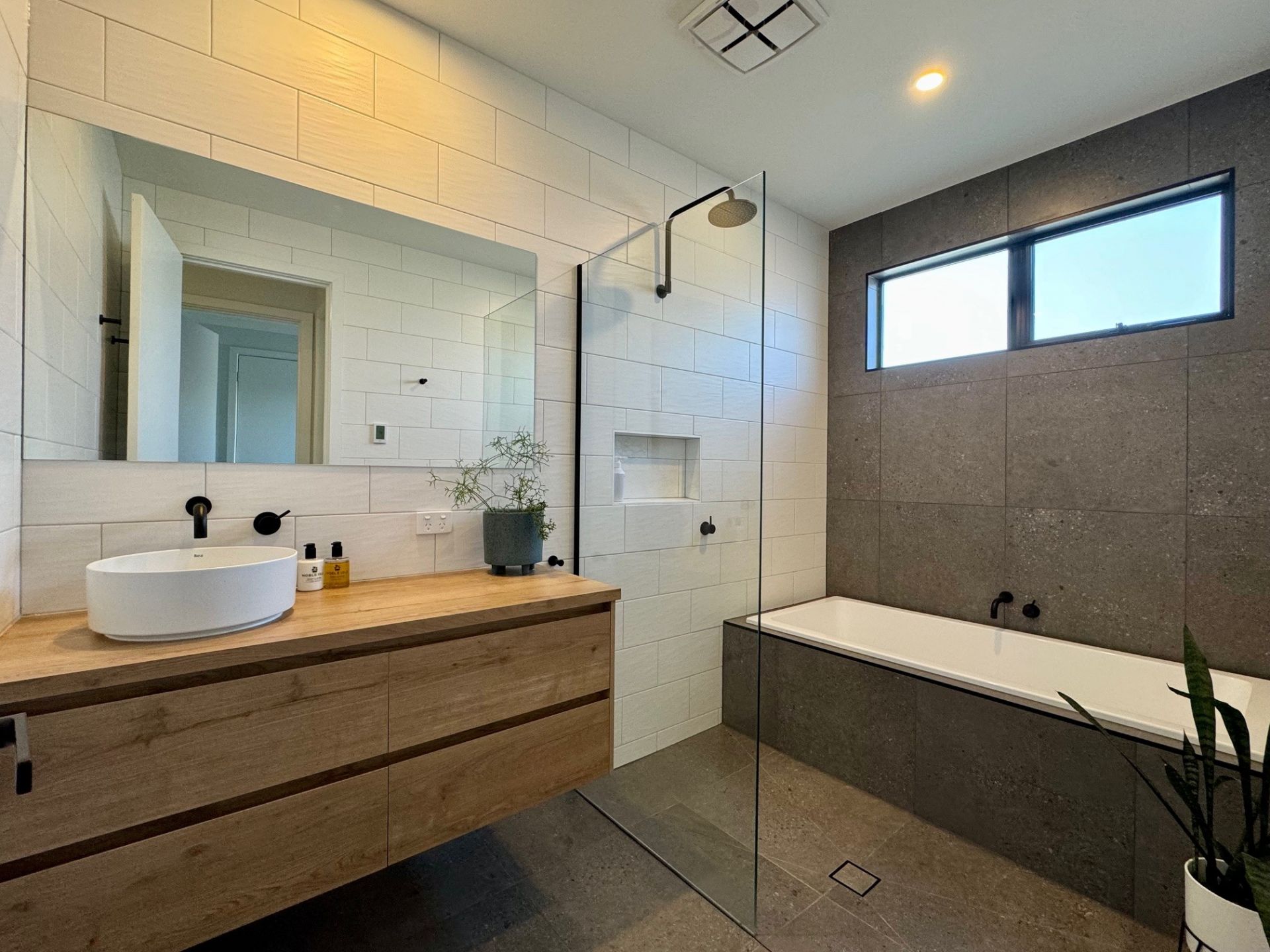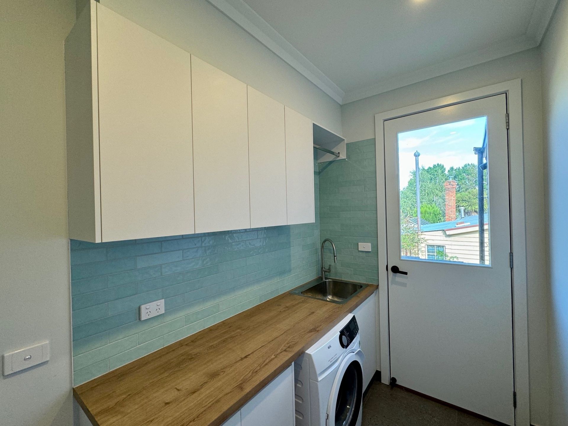 The central bathroom is equally impressive, featuring both a bath and a shower, along with a separate toilet for added convenience. The spacious laundry offers external access and plenty of storage, making it easy to stay organised.