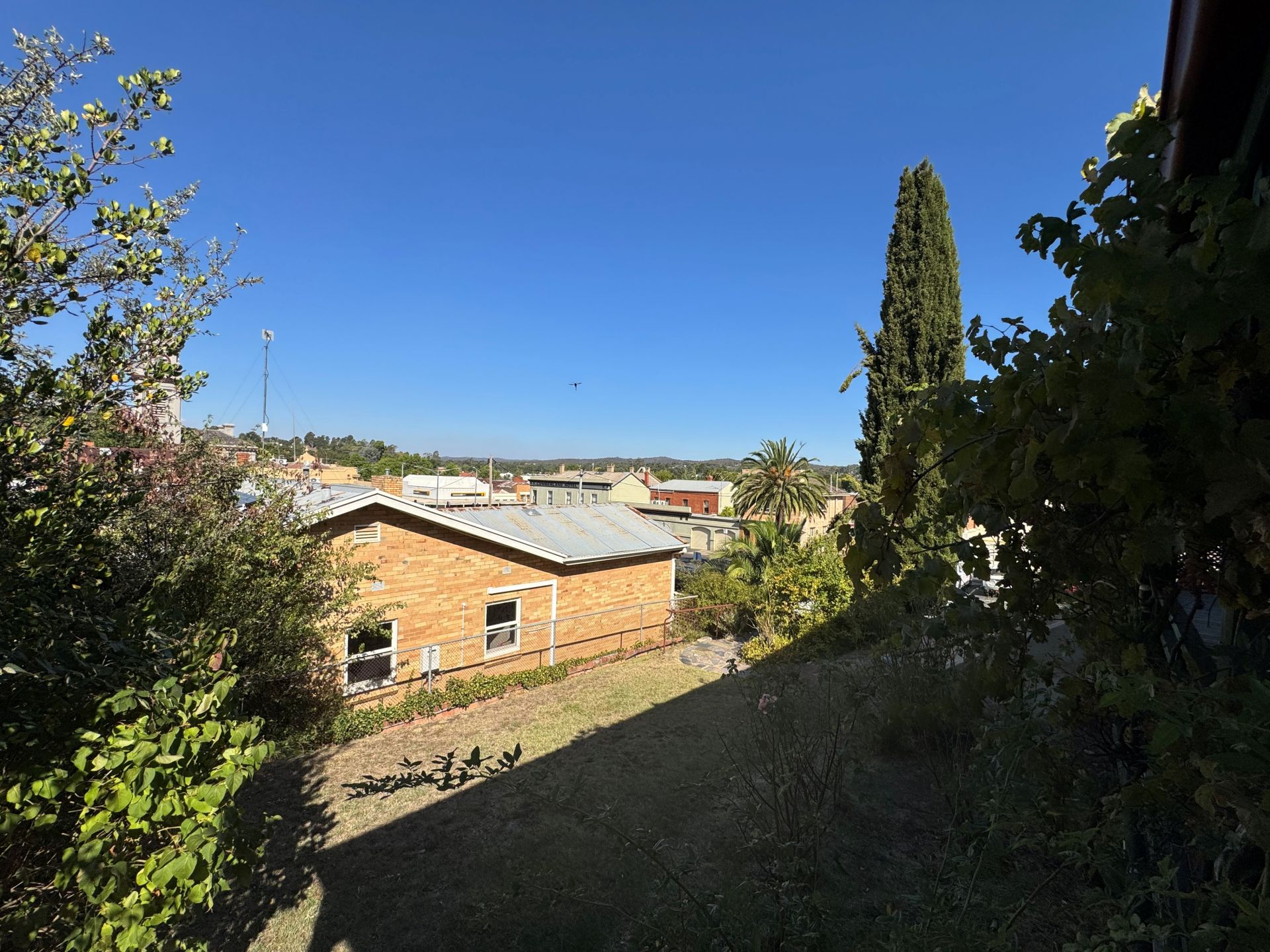 Outside, a leafy garden with a small lawn offers a peaceful outdoor retreat, and elevated views capture the charm of central Castlemaine.