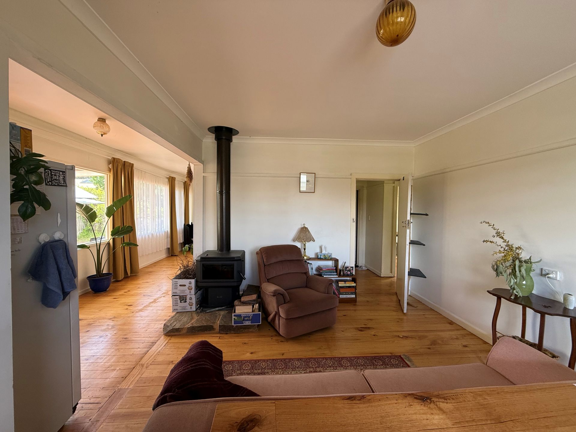 This welcoming two bedroom home offers a bright and practical layout designed for comfortable everyday living. The kitchen features electric cooking, stylish timber benchtops and island bench, complemented by a split system to ensure comfort year round. The adjoining dining/living area exudes cosy vibes, complete with a charming wood heater.