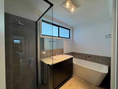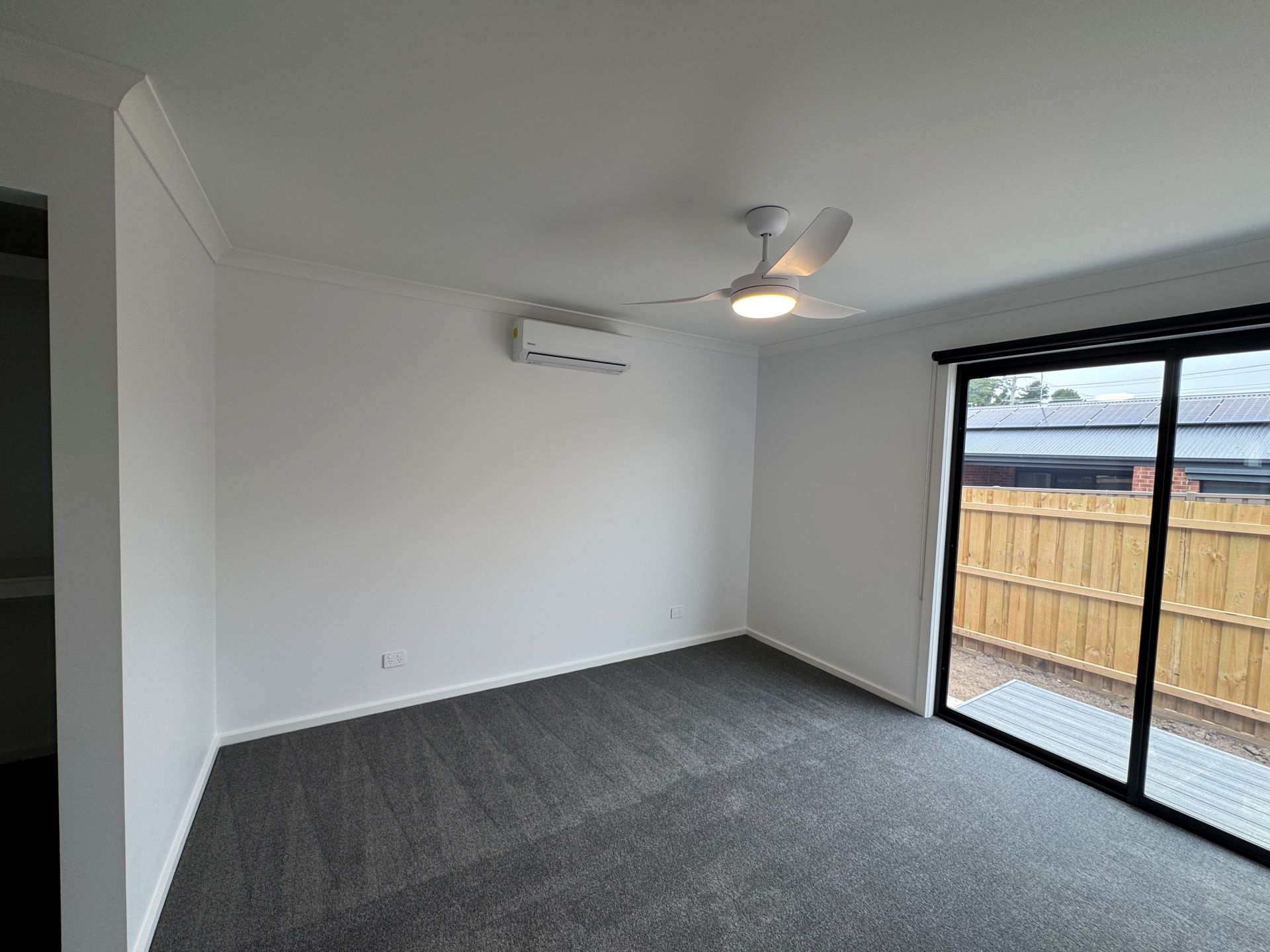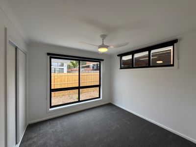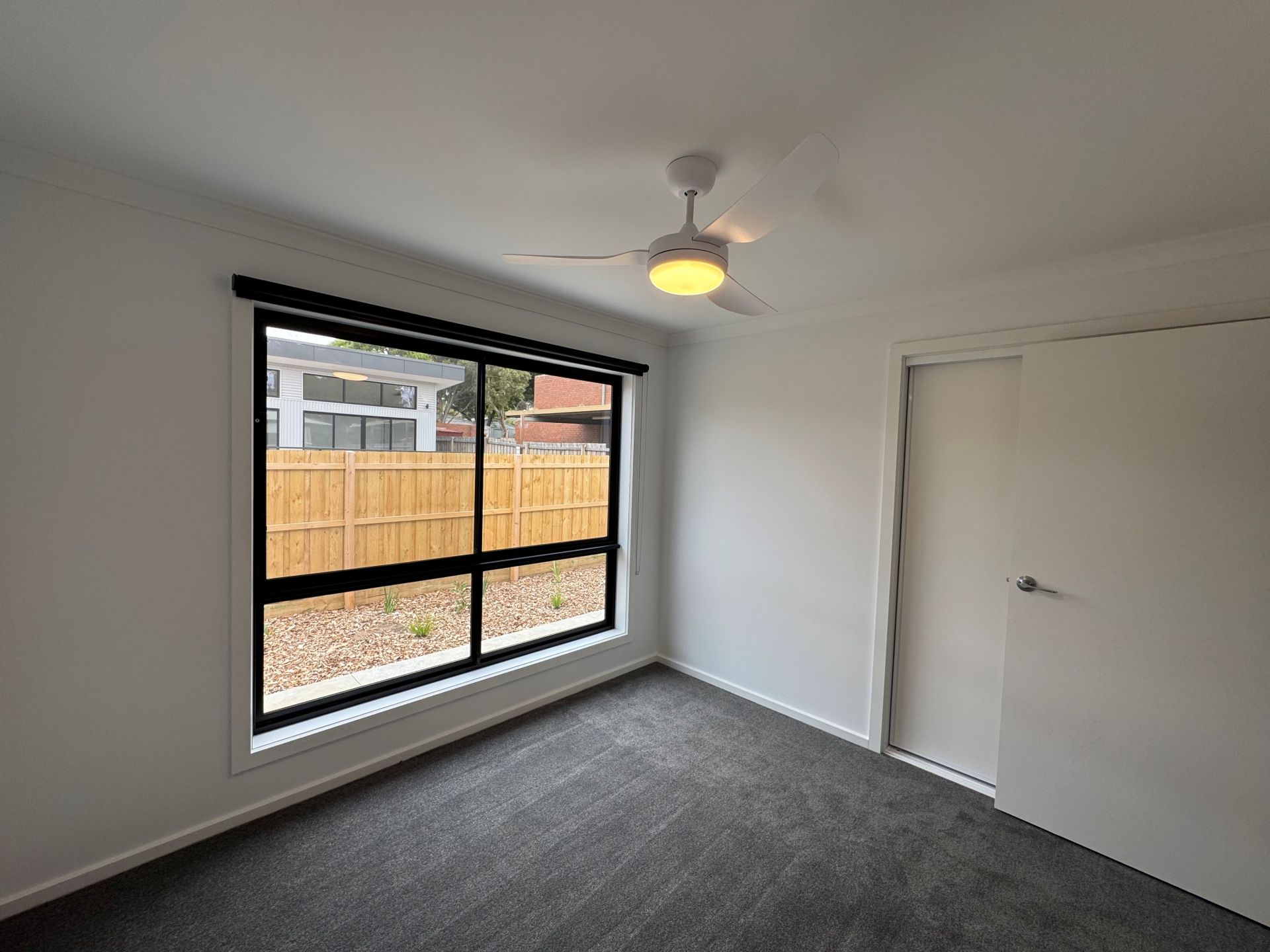 Inside, the light filled open plan living area features high windows and a split system for year-round comfort. A galley style kitchen offers electric cooking, dishwasher, breakfast bar and ample storage. The master bedroom features a walk in robe, split system heating/cooling, a stylish private ensuite and access to the backyard via a private deck. With ceiling fans in all bedrooms, the second and third bedrooms provide built in robes. The main bathroom includes a separate shower and large bath for those essential wind down moments. The home also includes a streamlined European laundry, storage cupboards and a built in study nook ideal for remote work.