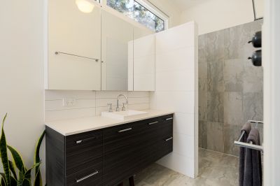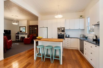 Elevated from the street, the home features a wrap‑around verandah and a private north‑facing terraced courtyard ideal for relaxed outdoor living. Inside, a light‑filled open‑plan kitchen, dining and living area overlooks a peaceful landscape. The updated kitchen includes quality appliances, an island bench and direct garage access. The adjoining living room showcases original timber walls, pressed‑metal ceilings and an open fireplace (ornamental only).