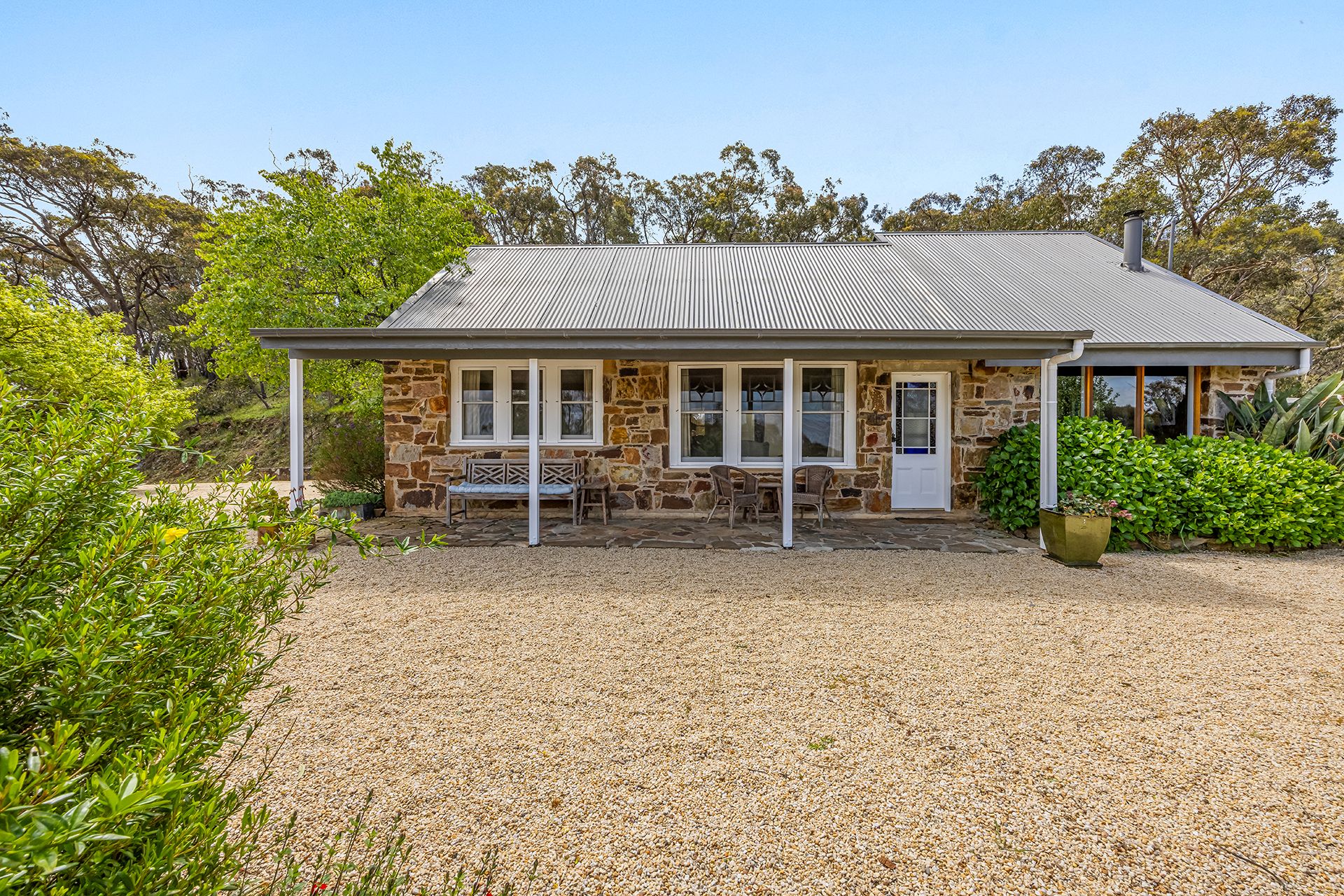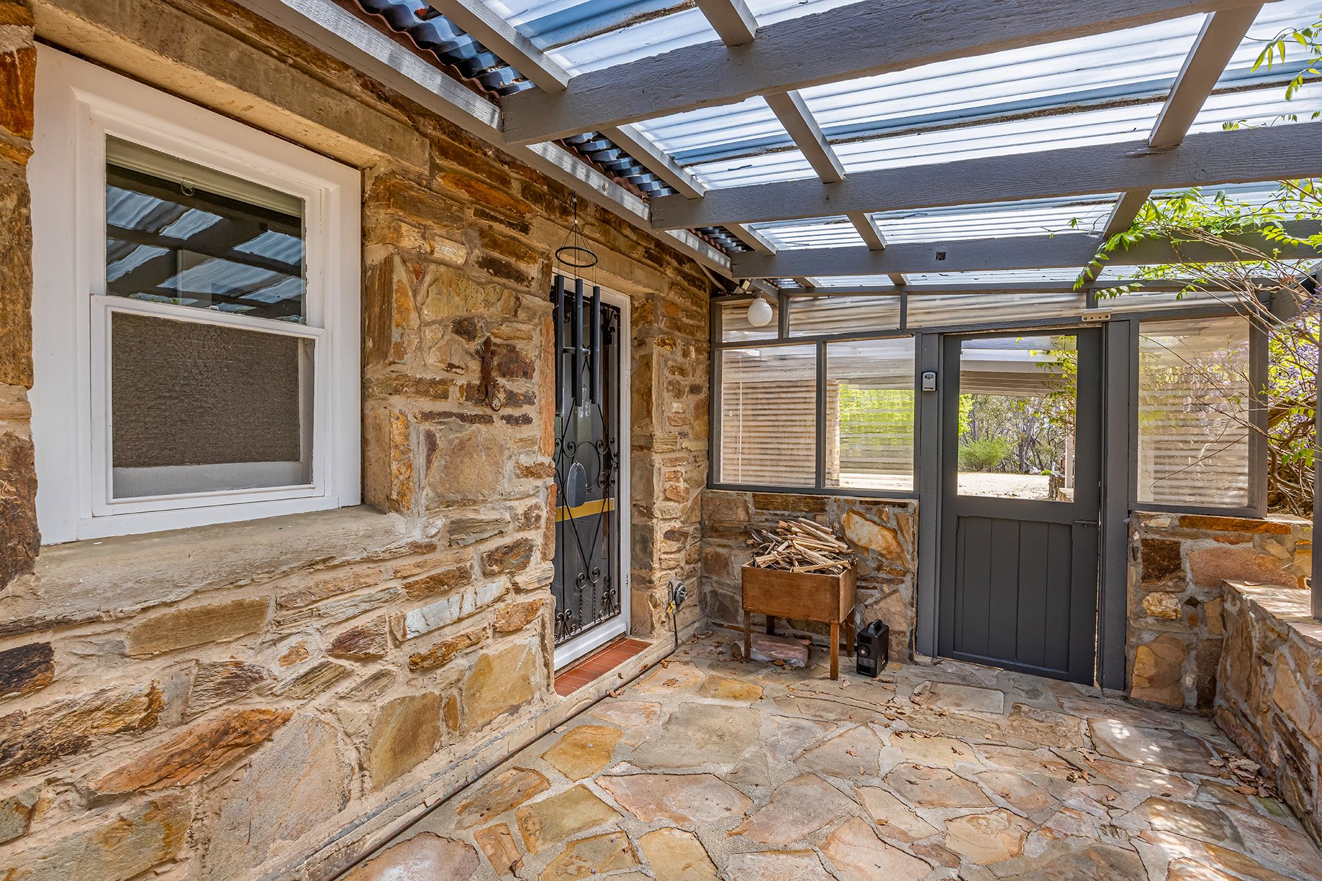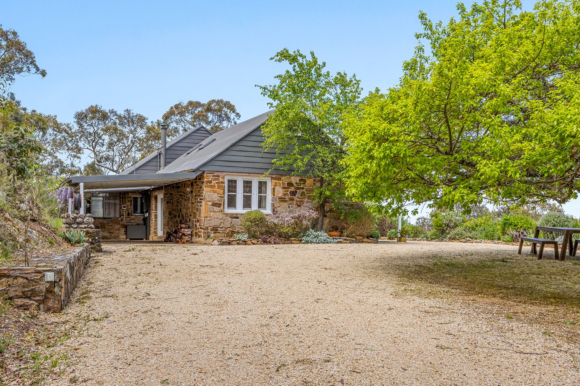 Stone construction helps keep the house naturally cool in summer, while winter is well catered for with two wood heaters and a gas heater.
