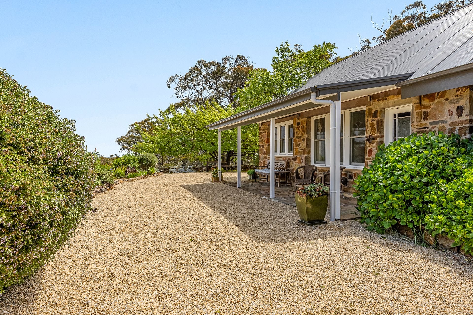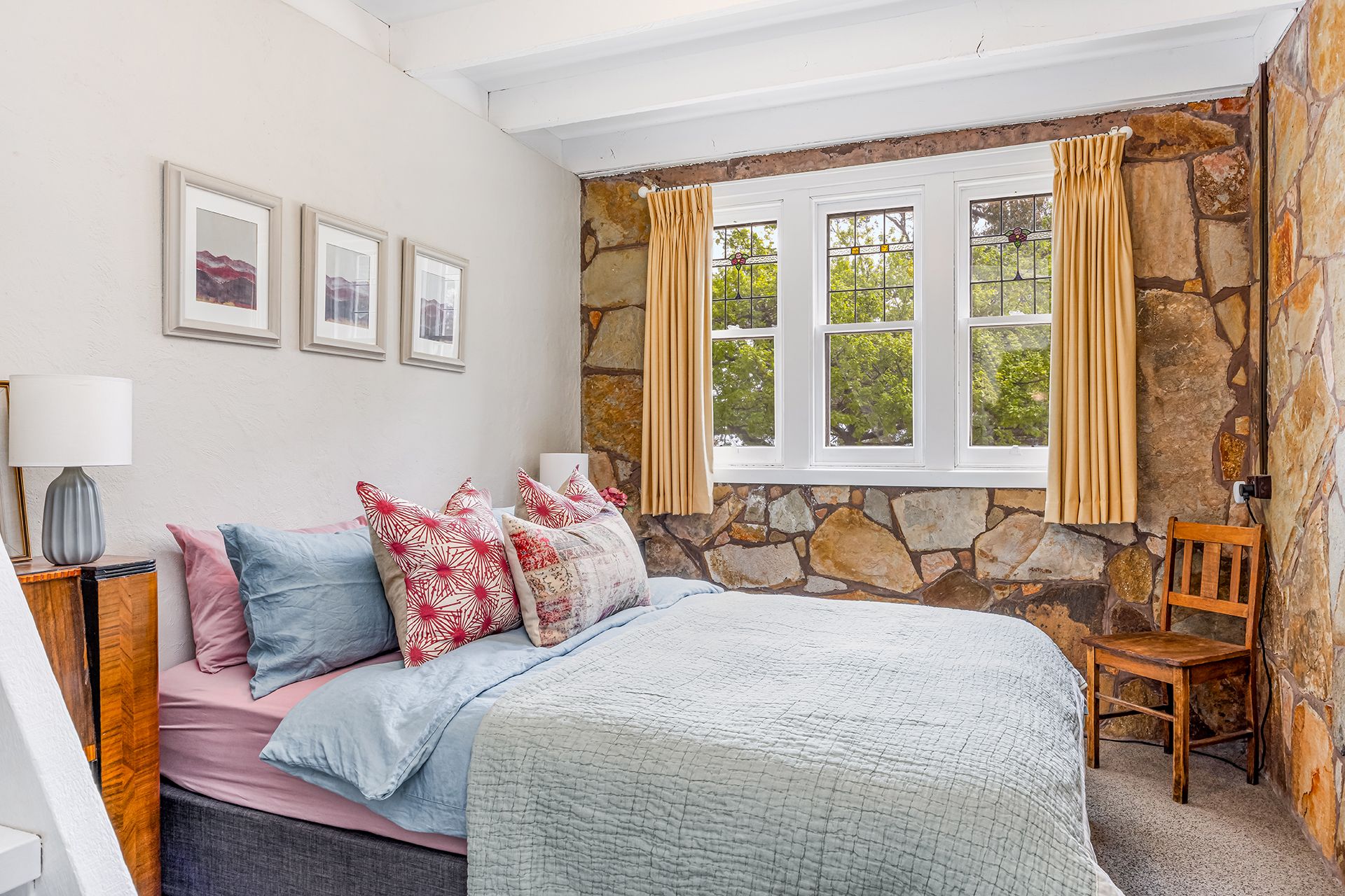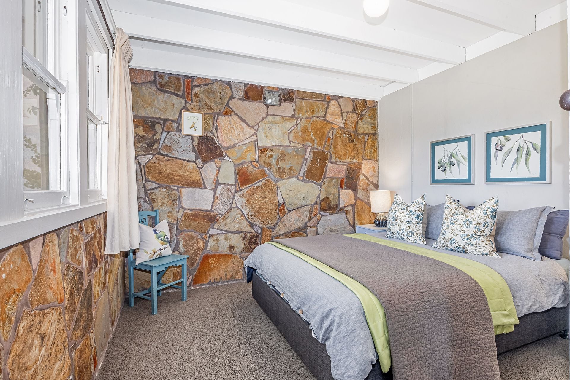 Stone construction helps keep the house naturally cool in summer, while winter is well catered for with two wood heaters and a gas heater.