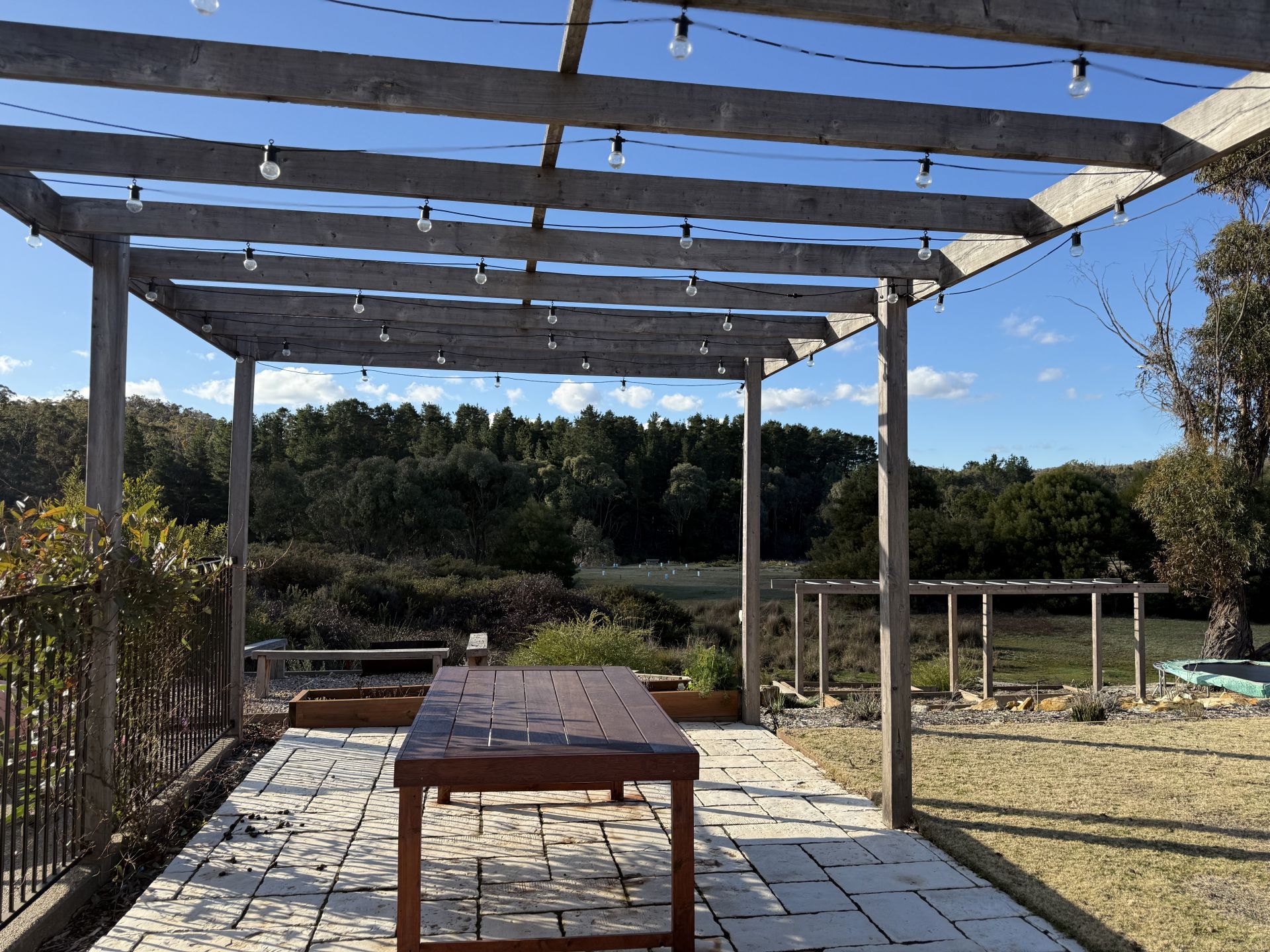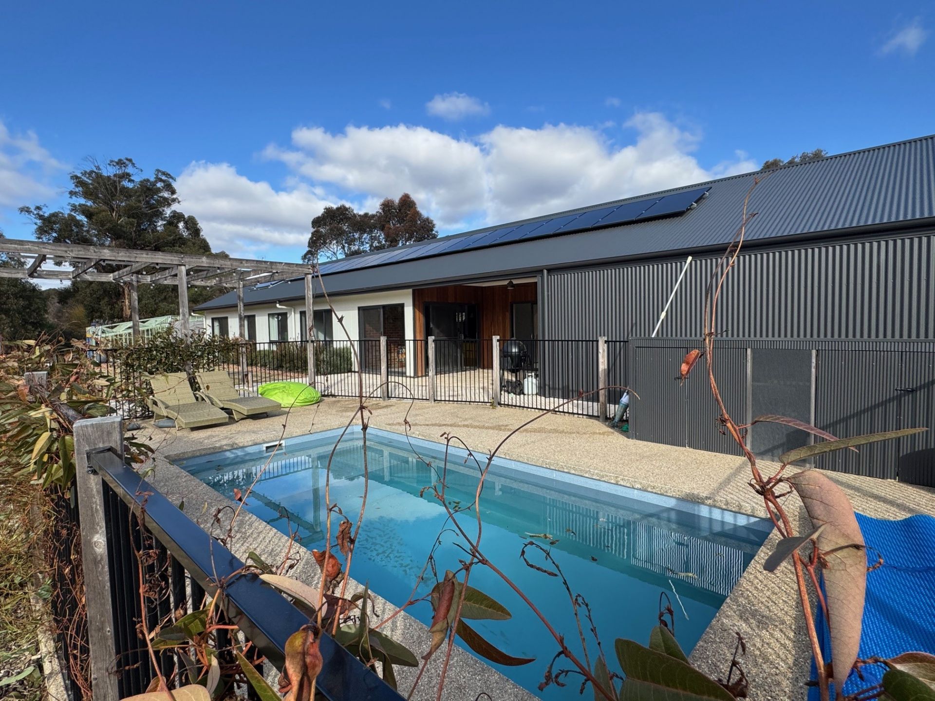 Step outside to a north-facing entertaining area, sparkling in-ground pool (maintenance included), landscaped native gardens, and established veggie beds.