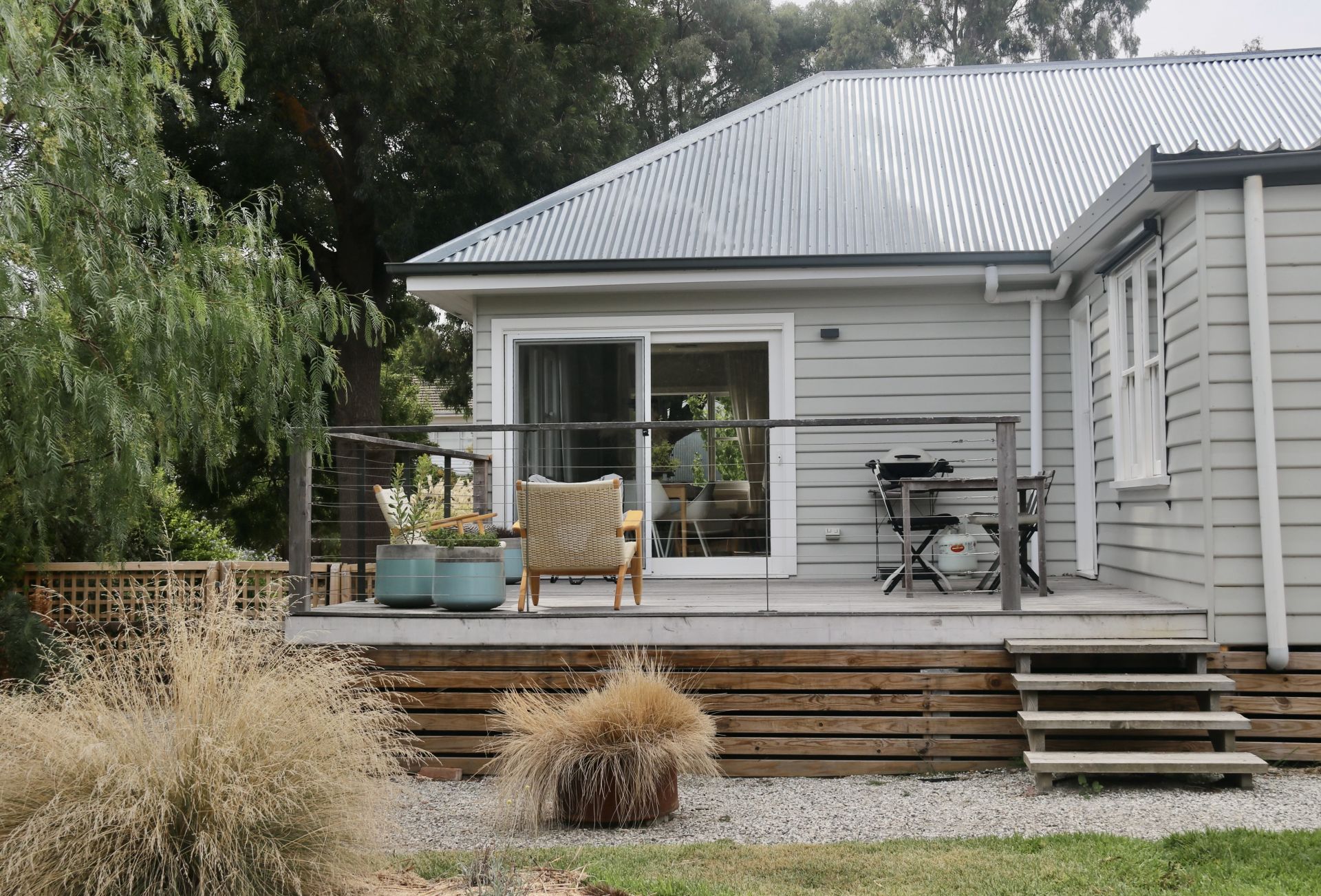 The master bedroom features built in robes and two bedrooms are complimented by ceiling fans. The kitchen offers plenty of storage and modern appliances. The property is equipped for year-round comfort with hydronic heating, evaporative cooling, and a cosy wood fire. A separate studio at the rear of the home provides the perfect space for a home office or creative studio.