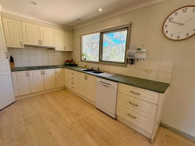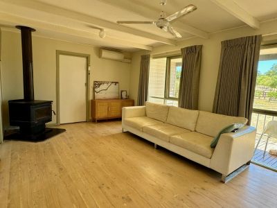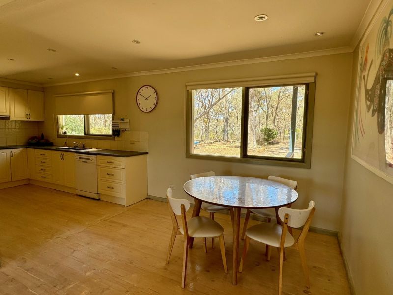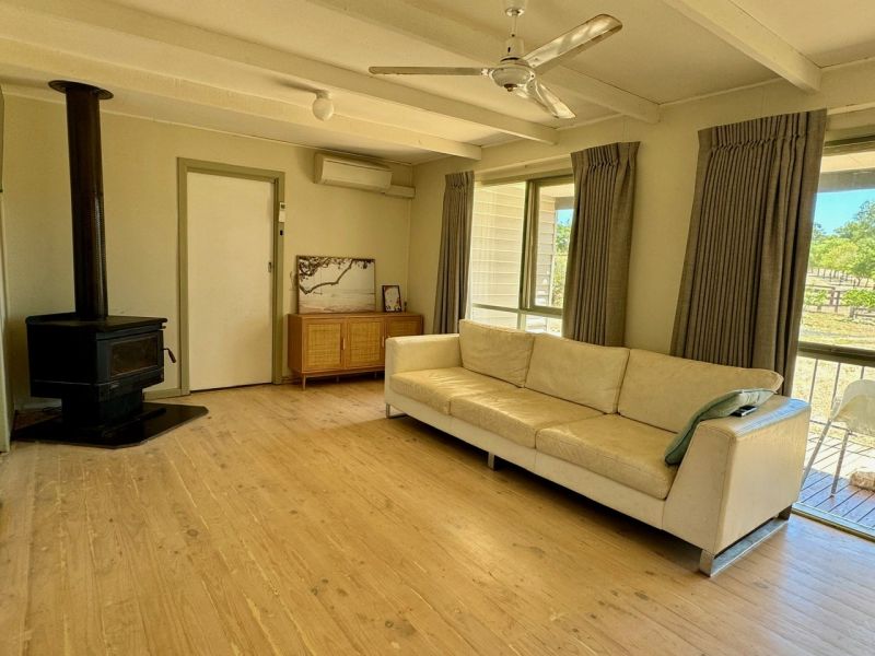 The home itself features three spacious bedrooms, two of which come with ceiling fans for added comfort. All the bedrooms are equipped with free-standing robes, providing plenty of storage. The bathroom includes a luxurious spa bath and a separate shower, offering a relaxing space after a long day. A second toilet off the laundry adds convenience for daily living. The country-style kitchen comes complete with an electric stove top and oven, perfect for cooking up delicious meals. Enjoy the outdoors from the front deck, which provides a peaceful spot to relax and take in the views of your expansive property. The central open-plan living area is perfect for family living, featuring both a wood heater for a cosy winter atmosphere and a split system in the lounge room, ensuring year-round comfort.