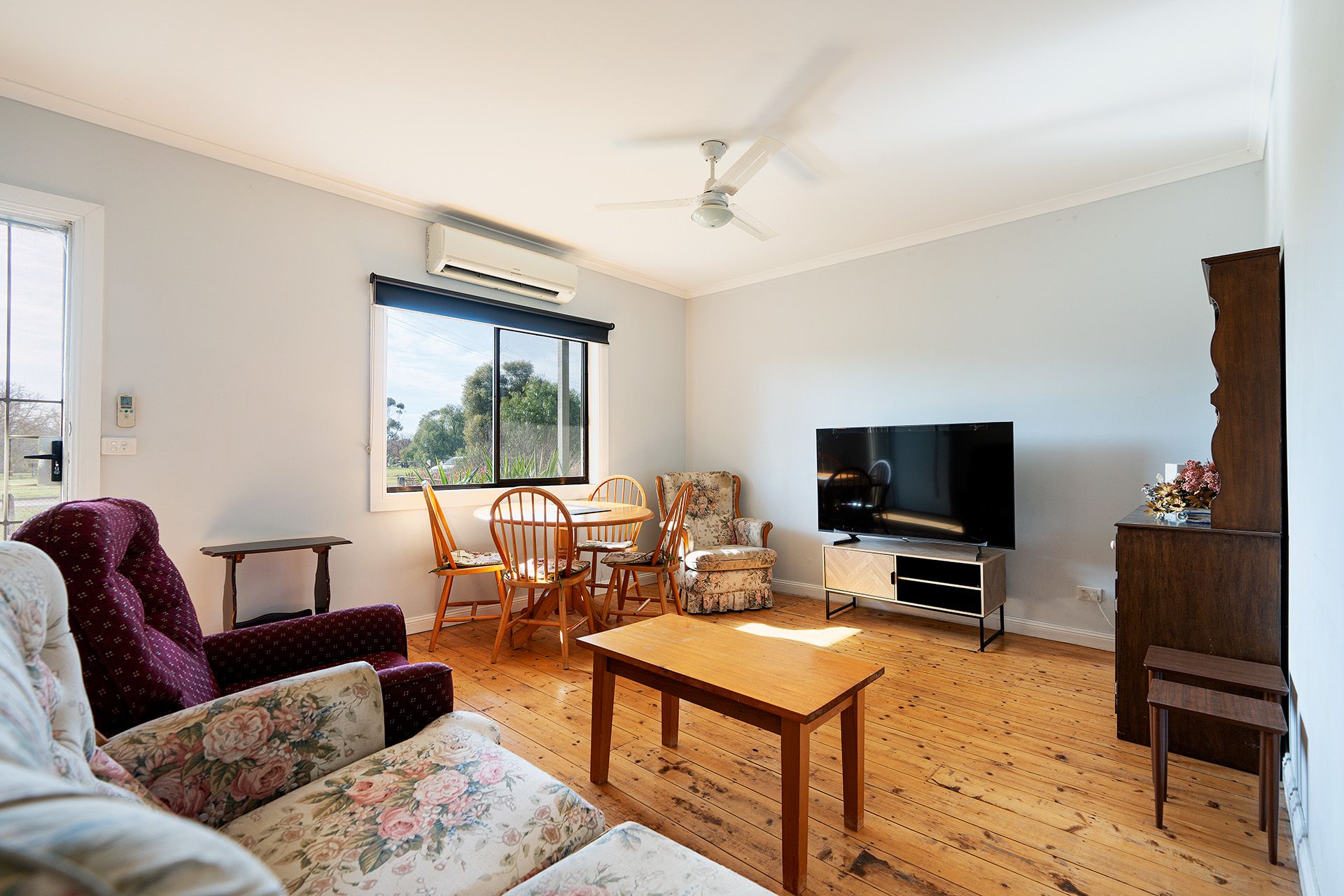 The property features entry into the north-facing living room with a split system, an updated kitchen with dining providing a gas cooktop, storage and external access to the verandah overlooking the rear garden, three generous bedrooms with built-in robes, an updated bathroom with shower over the bath, a vanity, and a toilet, completing the internal floorplan is a laundry with storage. Additional details include floorboards and a ceiling fan. This property is on bottled gas.