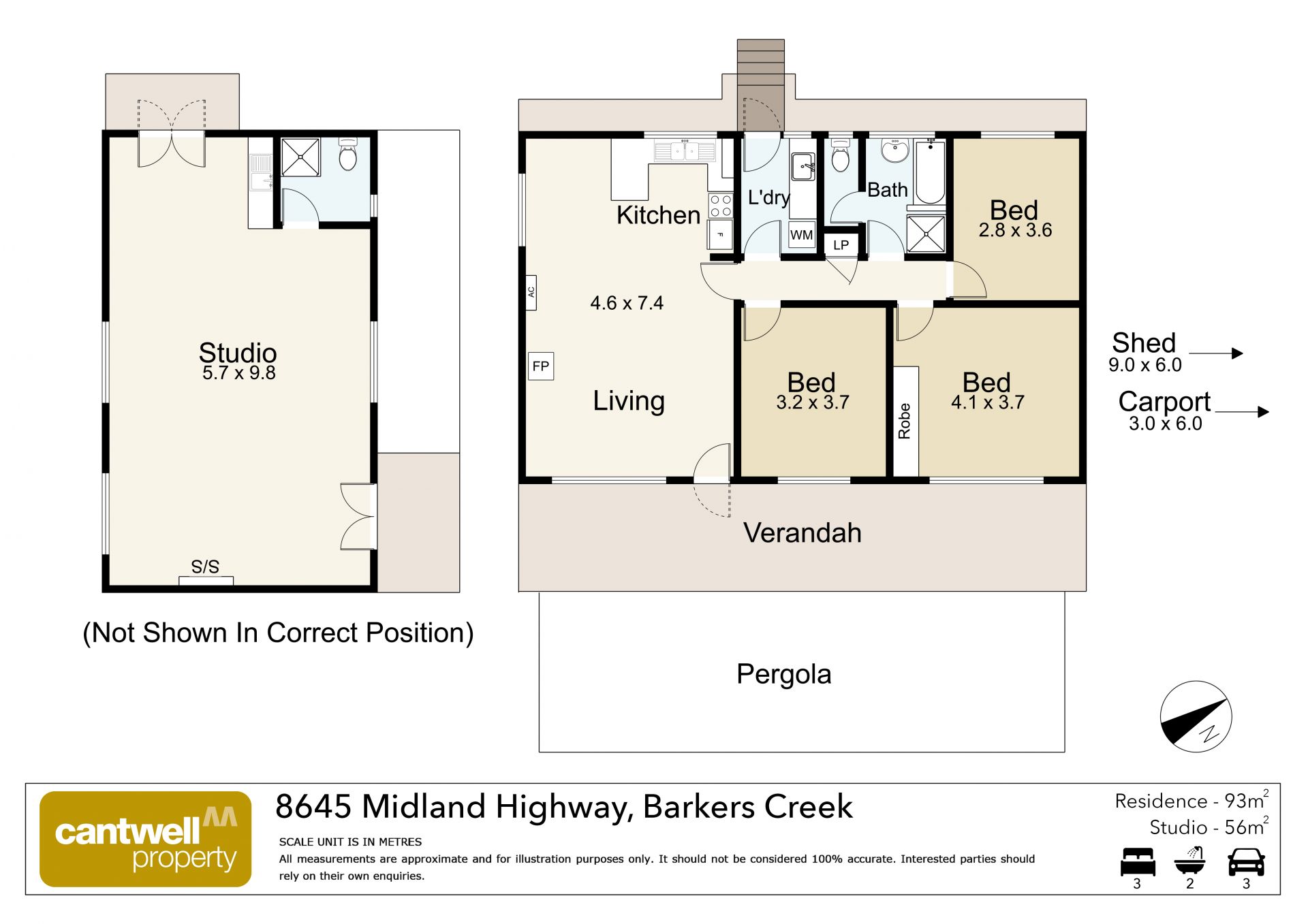 A major bonus is the beautifully finished, north-facing self-contained studio, ideal for a home-based business, guest accommodation or creative retreat (STCA). Measuring approx. 5.7m x 9.8m, it includes a vaulted ceiling, kitchenette, ensuite bathroom, split system, excellent insulation and double-glazed French doors that open to a private, enclosed orchard.
