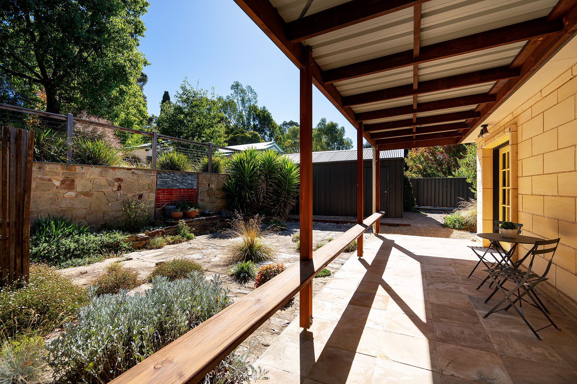 The generous grounds include a stone driveway leading to a 6m x 3.5m garage/shed with a concrete floor. A stone-paved ramp leads to the secret back garden, a private sanctuary featuring a variety of established trees, green grass, native planting and abundant bird life. The garden features stone walling, gravel paths and a water tank. The large allotment also offers opportunities for subdivision STCA. This property is cottage-cute at its finest.
