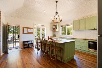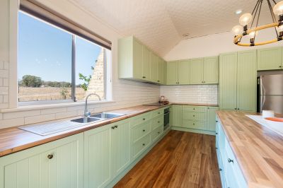 The heart of the home is the country-style kitchen, with a high-pressed metal cove ceiling. Featuring an island bench perfect for casual dining, an induction cooktop, an under-mount oven, and a pantry. Double doors open directly onto the verandah, extending the living space outdoors and offering the ideal spot to enjoy the surrounding countryside.
