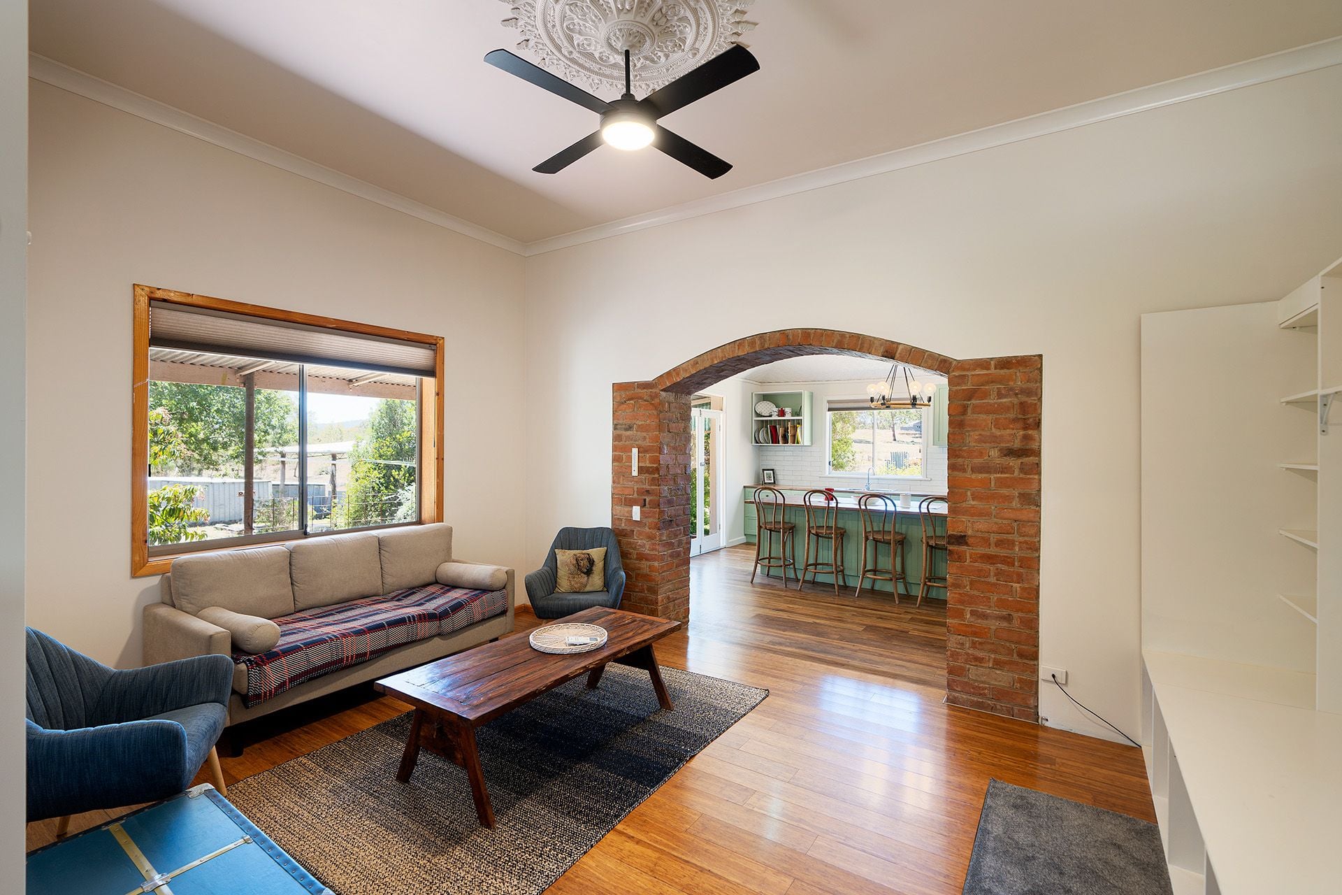 The central living room has a split system providing year-round comfort. Off the living area, is a sitting room, an additional retreat space perfect for quiet reading, a home office, or a playroom for the family. Three spacious bedrooms are serviced by a bathroom with a shower, bath, a separate toilet and a laundry.
