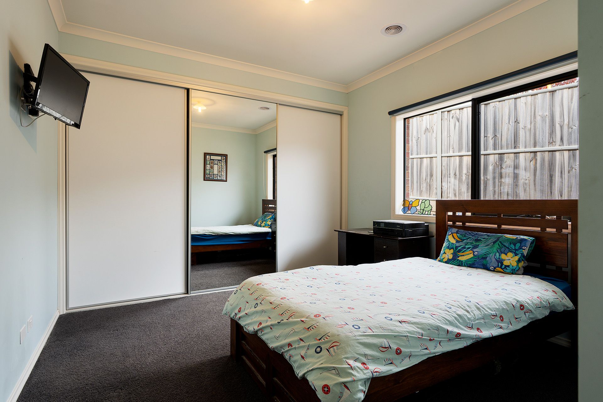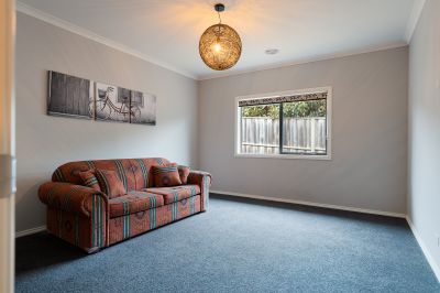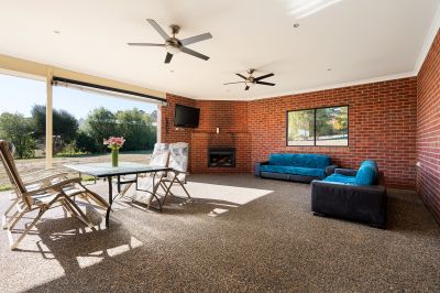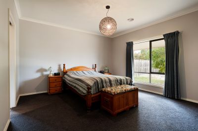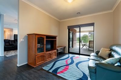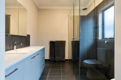 A second living area or rumpus room provides a separate retreat-perfect as a games room, kids' zone, or private relaxation space. The main bedroom features a walk-in robe and ensuite with a shower, vanity and toilet. Three further bedrooms include built-in robes, while the fifth bedroom offers flexibility as a theatre room, guest room or studio. A central family bathroom has a spa bath, shower, vanity and separate toilet. Comfort is ensured throughout the seasons with double-glazing, ducted heating, evaporative cooling, solar hot water and two solid wood heaters. The secure garage features two internal entry points for added convenience.