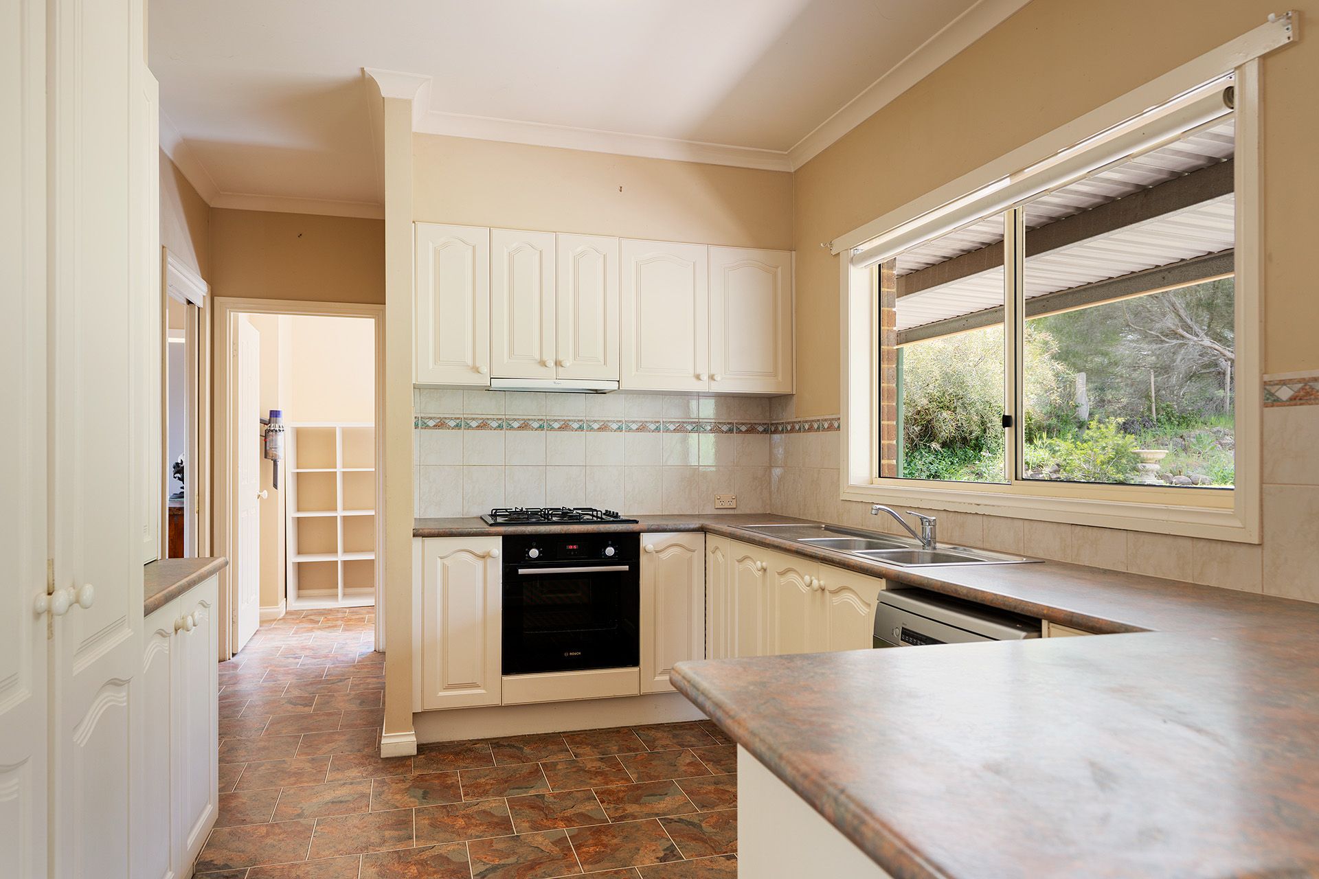 Step inside through the front entrance to discover a formal living and dining room bathed in natural light, with a large bay window overlooking the front garden. The adjoining kitchen, second dining, and second living area form the heart of the home, perfect for everyday living and entertaining. The kitchen is well-appointed with a gas cooktop, a new under-mount oven, a dishwasher, a pantry, and ample storage. The dining area opens to a rear patio, while the second living space enjoys garden views and is comforted by a gas wall heater and split system.