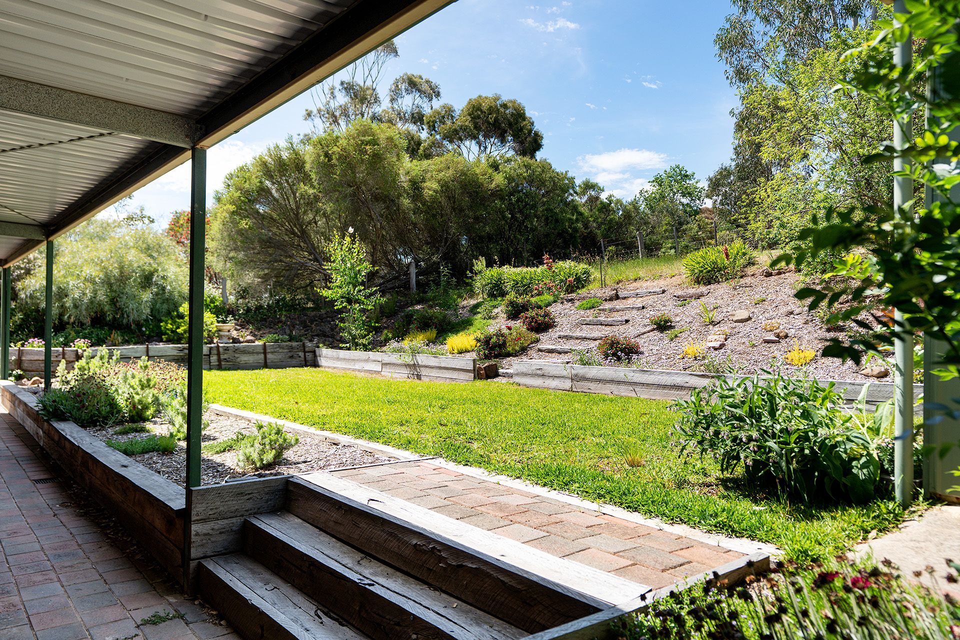 Outside, the property includes a 7m x 6m carport, a 7.5m x 6m garage with a concrete floor and power, a 3.3Kw solar system, and new extensive landscaping, retaining walls, fencing and exposed aggregate paving. The terraced landscaping adds visual interest and functionality, while the shared pebble dash driveway enhances the home's timeless appeal.