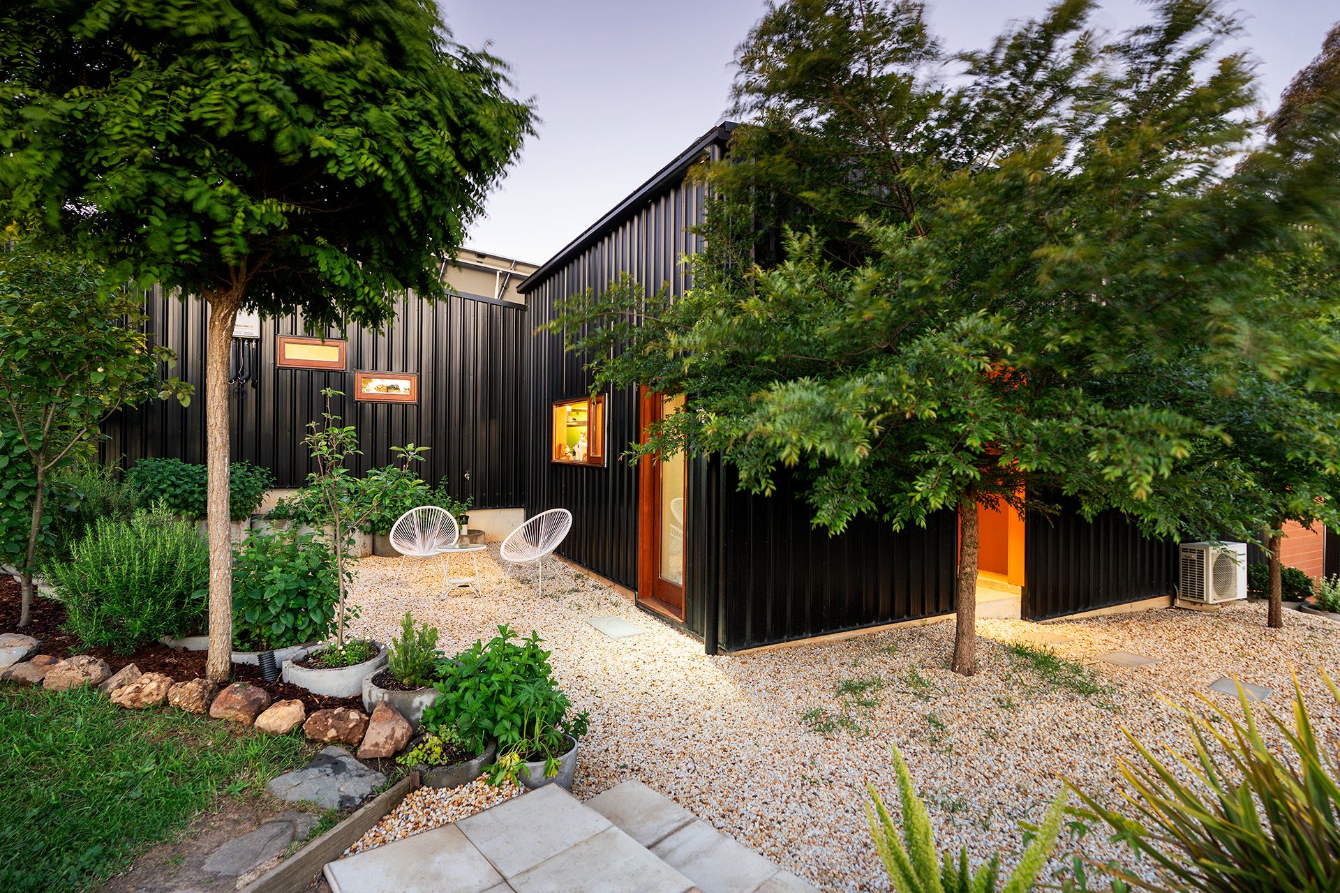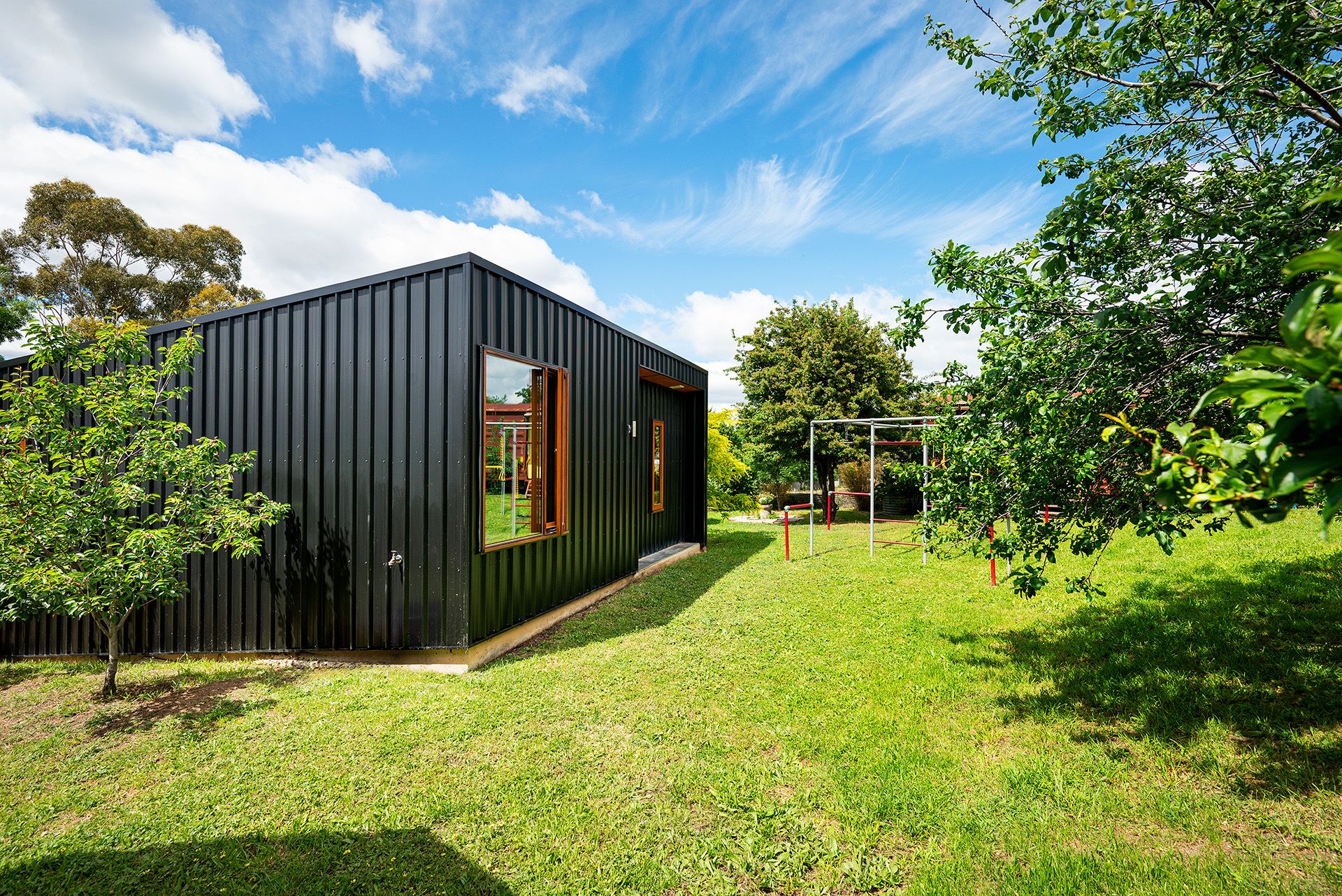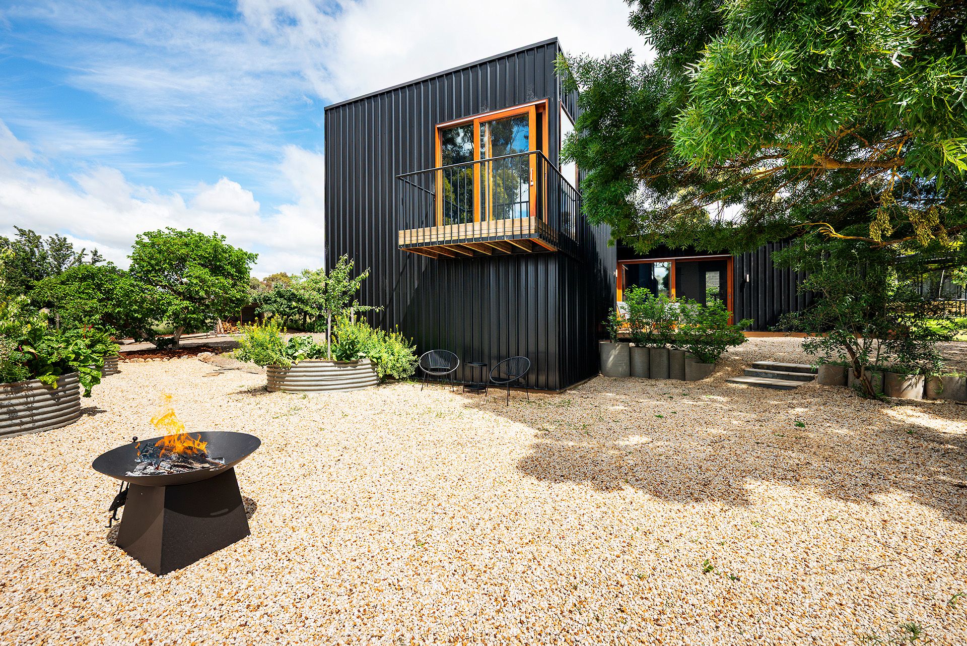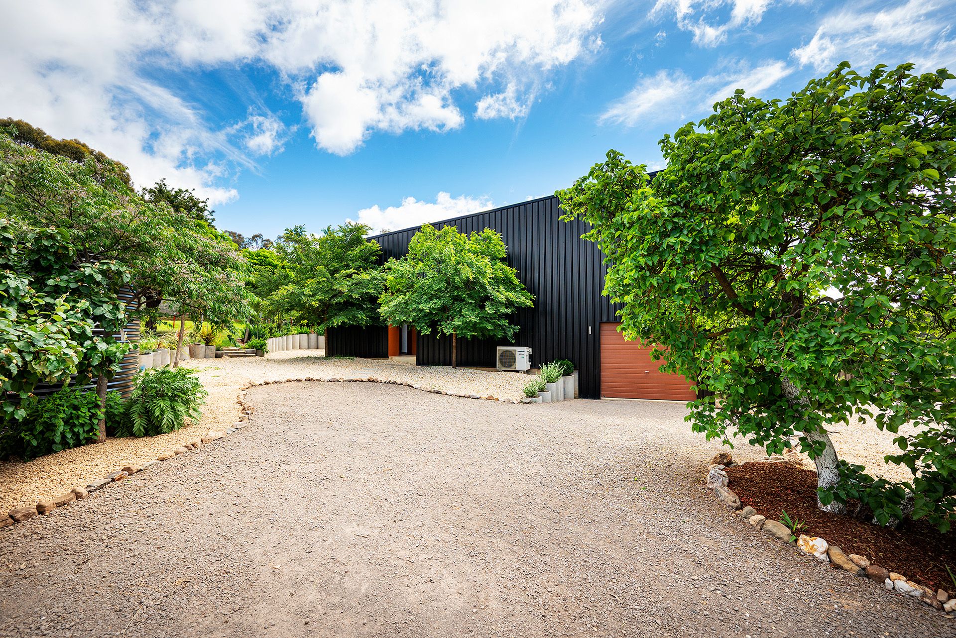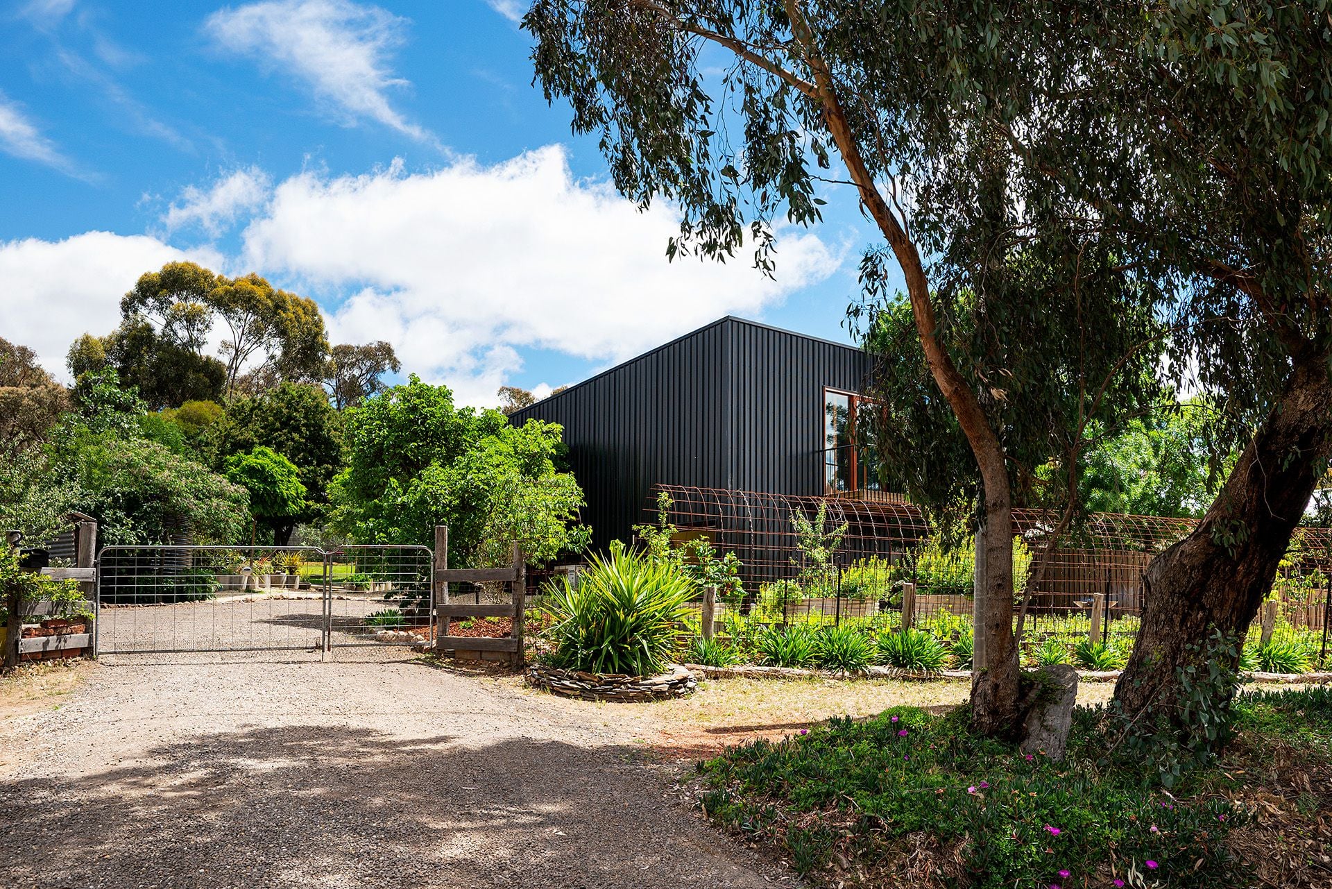 Architectural intent meets country calm in a striking three-bedroom residence that blends bold design with sustainable living. Wrapped in sleek black Colorbond and softened by timber-framed windows and doors, this home makes a sculptural statement while effortlessly blending into its natural surroundings.