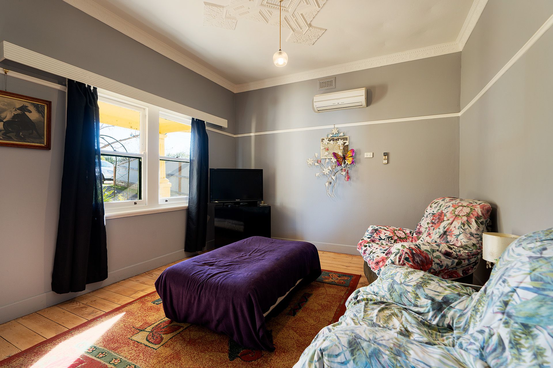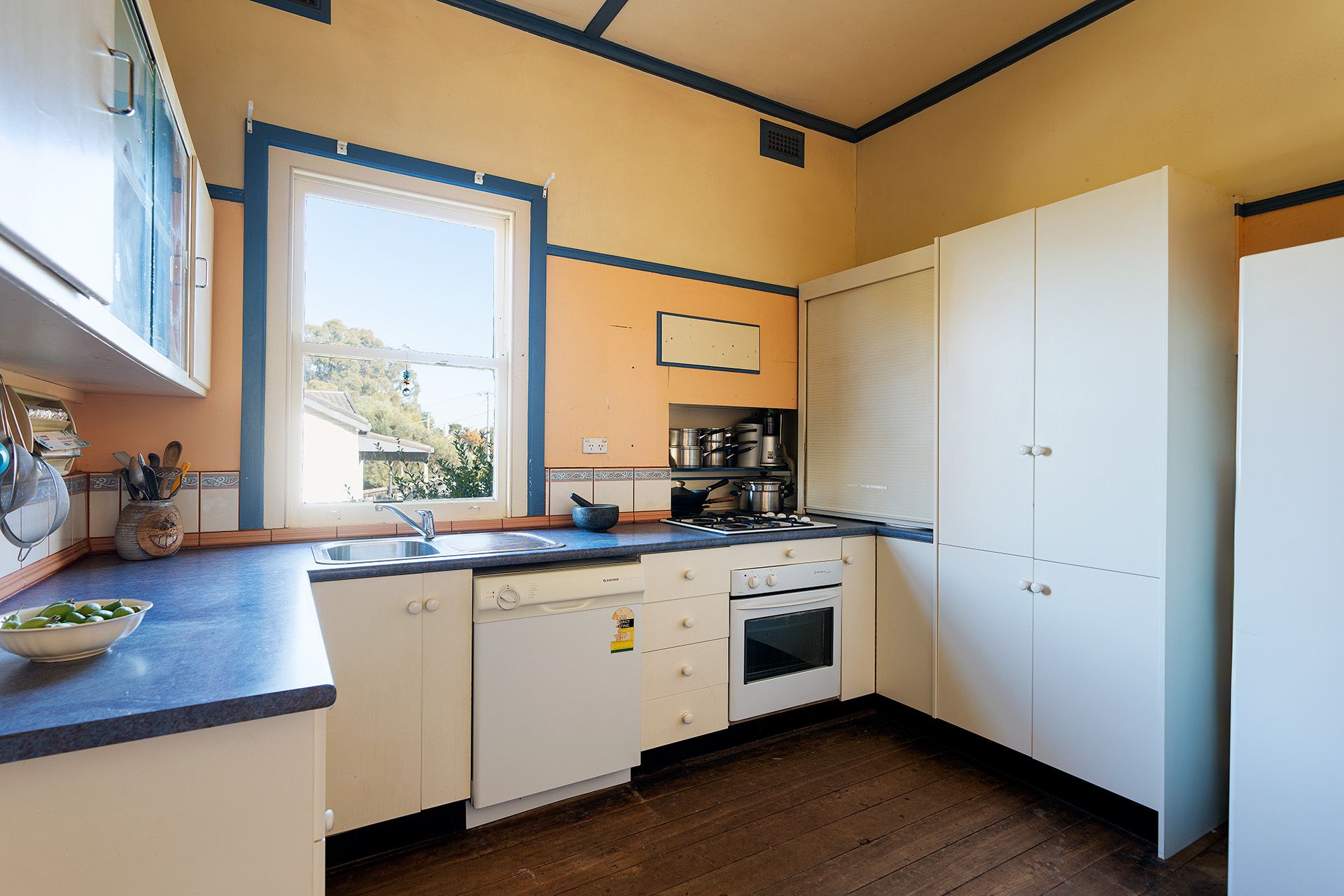 The period home features an entry from the front porch into the living room with a freestanding gas heater and a split system. The kitchen with dining provides a gas cooktop with an under-mount oven, and period cabinets. The main bedroom is front-facing with an original brick fireplace surround, ornate plasterwork and a ceiling fan. Of the two further bedrooms, one is north-facing, and the second has a stunning view over Castlemaine. Completing the floorplan is an updated bathroom with floor-to-ceiling tiles, a shower, a vanity and built-in storage. A laundry has a separate toilet. Updates include an integrated solar system and period details consisting of timber flooring, high ceilings with ornate plasterwork and double-hung windows.