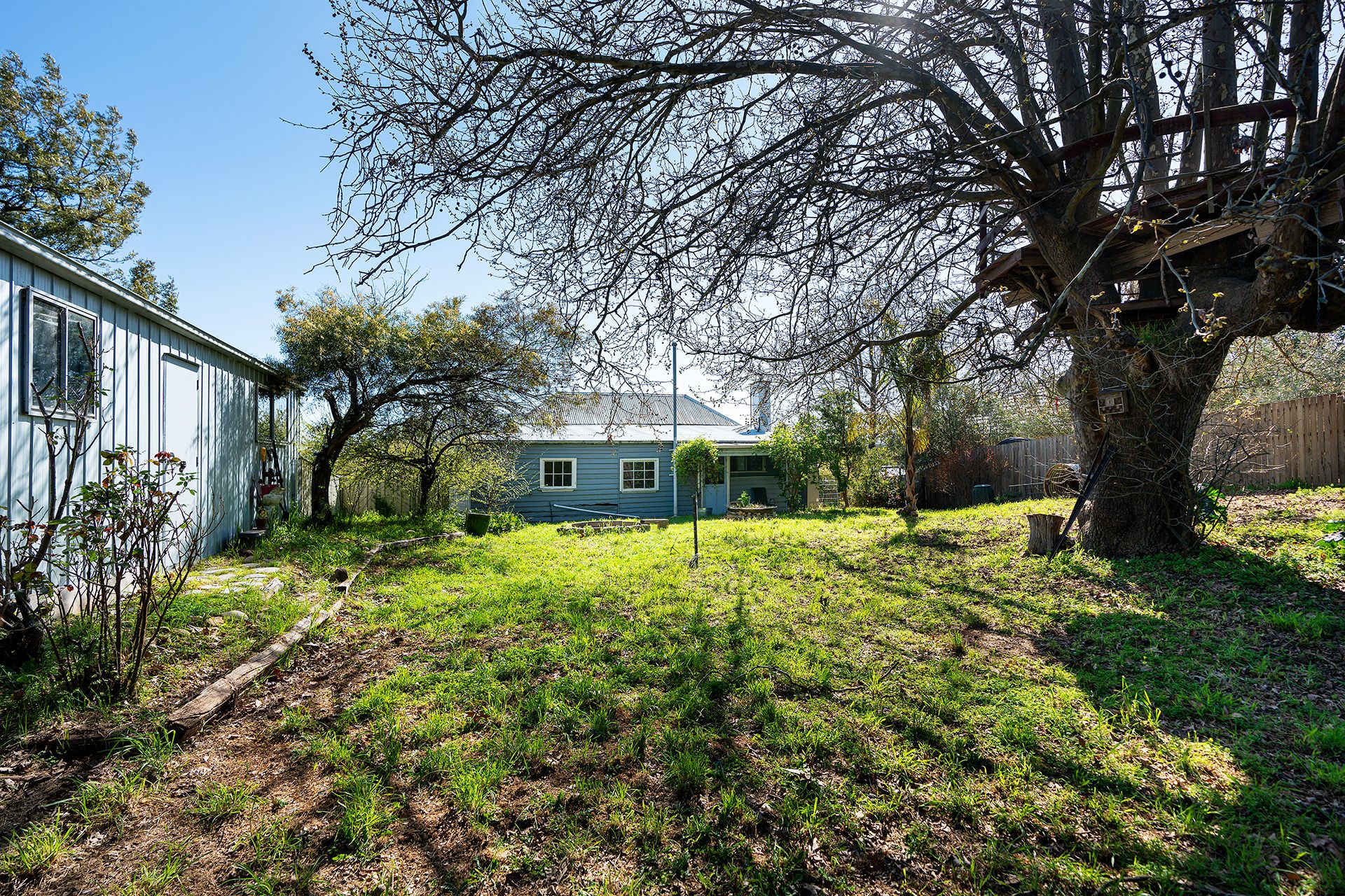 A driveway leads to a large 6m x 9m two-roller door garage with a concrete floor and power. The fenced back garden includes a water tank, a low-maintenance garden, a large established Liquidambar tree that adds a touch of stunning autumn colour, and the perfect tree house!