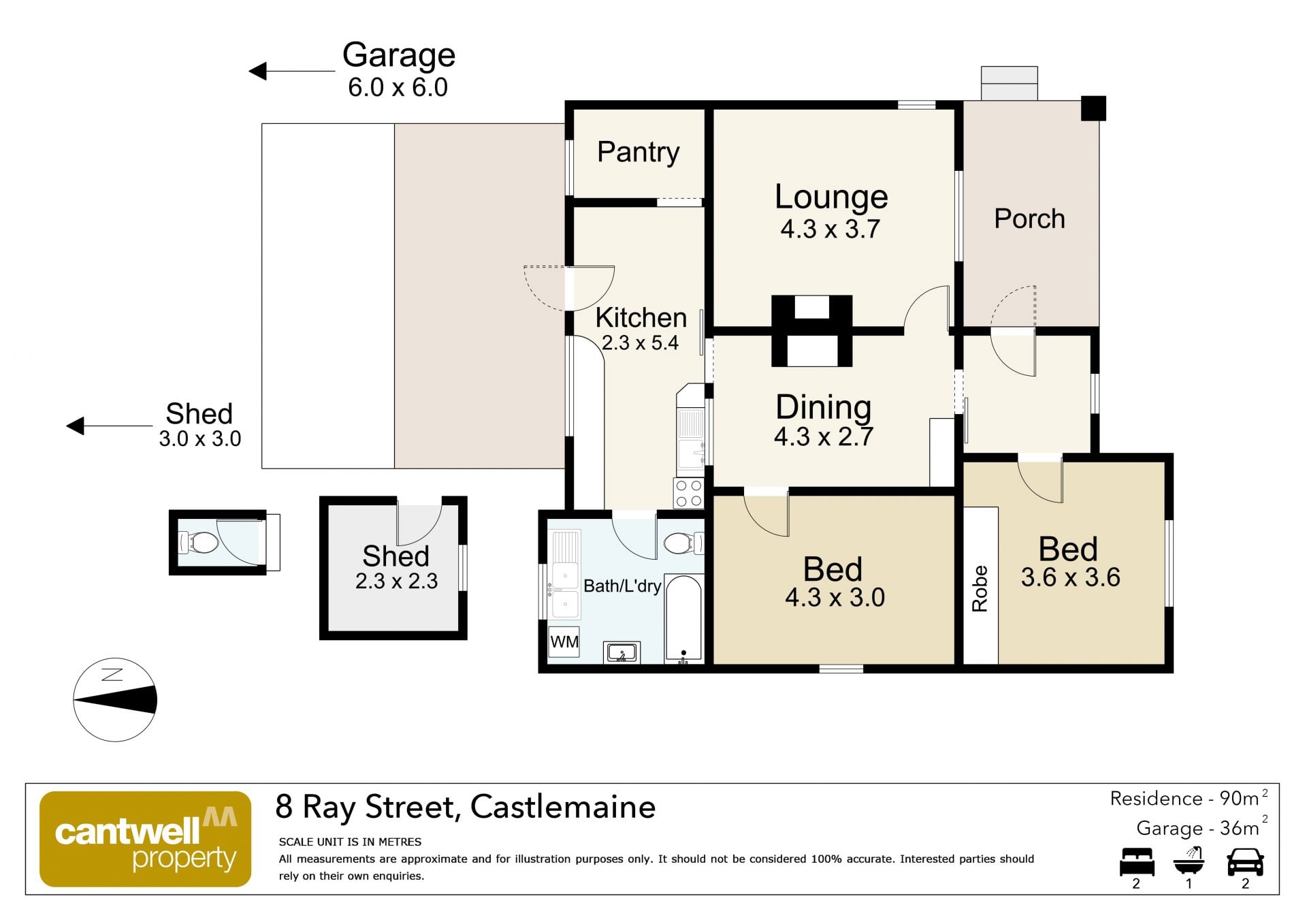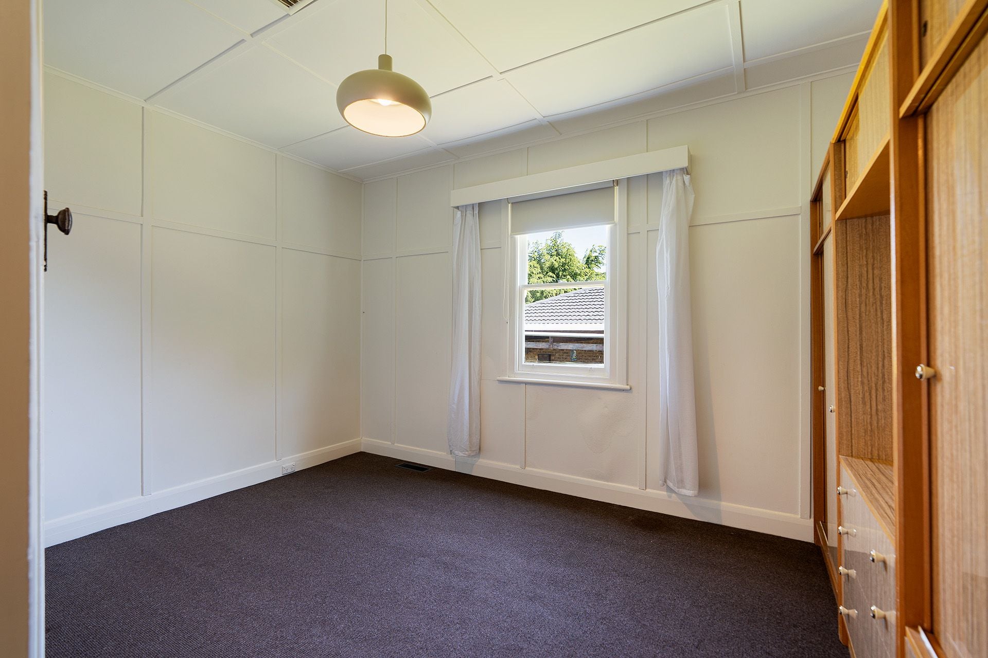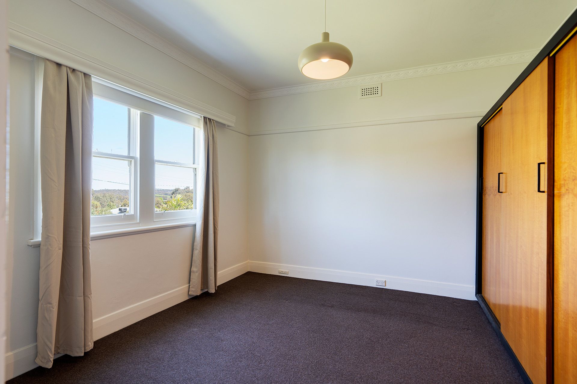 The period home features an entry from the front porch into a formal foyer with pretty lead-light windows. The front-facing living room has a period brick surround with built-in shelving and overlooks the front porch and garden. Central to the home is the dining room with period timber cladding, a built-in display cabinet, a window to the kitchen and a classic period fireplace surround. The light and bright north-facing kitchen with its retro curved cabinets has a freestanding gas cooktop and oven, a large walk-in pantry and storage room and access to a covered patio complete with a vine-covered pergola-ideal for alfresco dining. The front-facing main bedroom has built-in robes and a lovely view of the surrounding landscape and Mount Franklin on the horizon. A spacious second bedroom has timber period detailing with built in robe. To the rear of the home is the bathroom with laundry facilities, a shower over the bath, a toilet and a vanity. Additional details include ducted heating and evaporative cooling, with period details being timber cladding, stained glass, ornate plasterwork and double-hung windows.