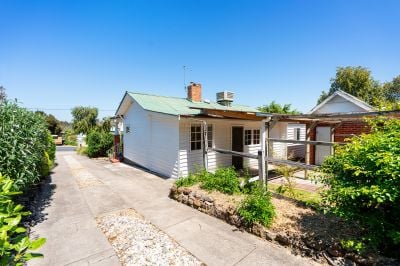 Nestled back from the street, this picturesque two-bedroom Californian Bungalow is on a generous 1025 sqm (approx) block, perfect for first-time buyers or savvy investors eyeing subdivision potential for a multi-unit development (STCA). The property is within walking distance of central Castlemaine for retail and amenities, the train station for service to Melbourne or Bendigo, and the Winters Flat Primary School.