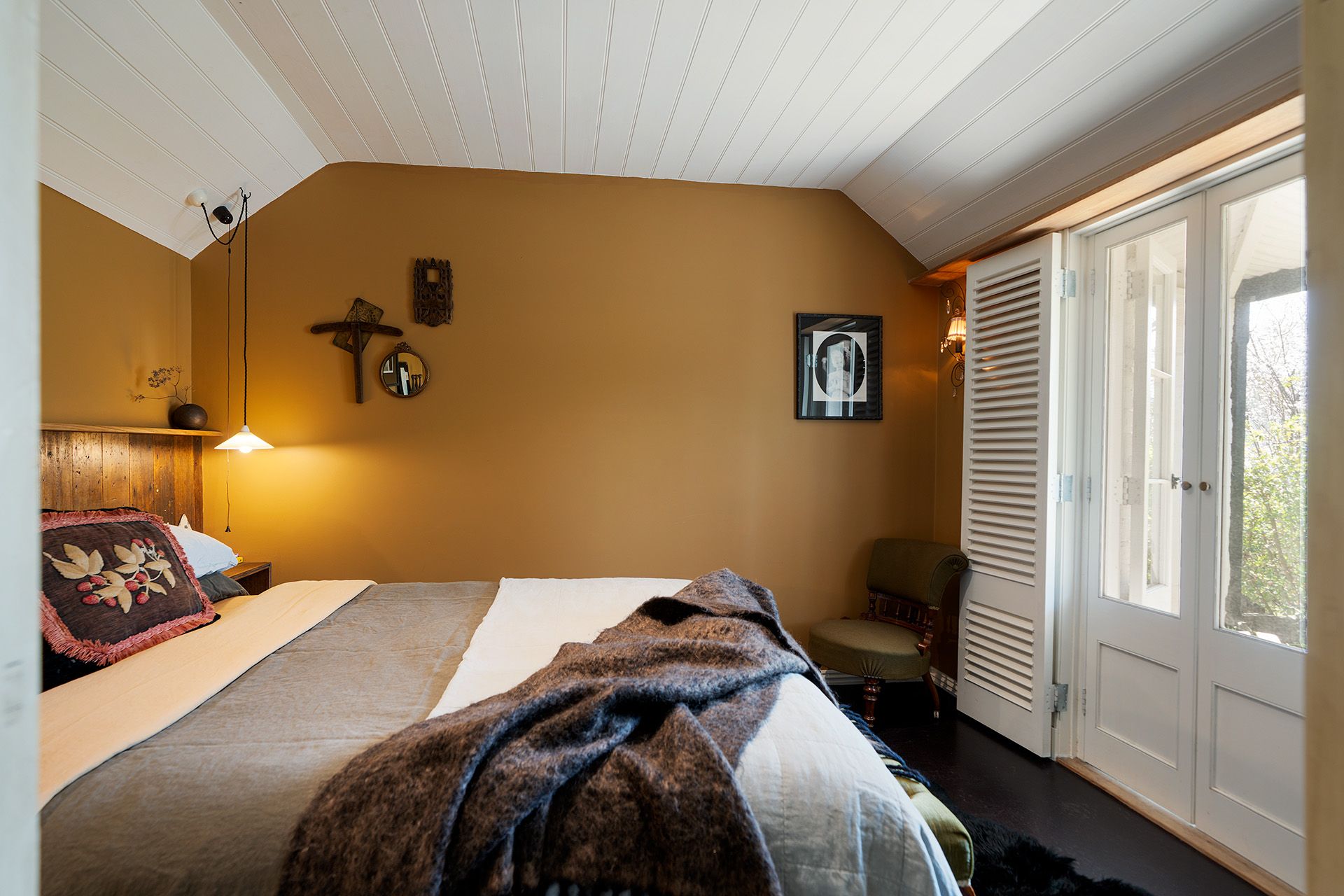 The main bedroom mirrors this charm with its own timber ceiling and French doors, while the second bedroom/study offers flexibility and warmth with timber-clad ceilings.