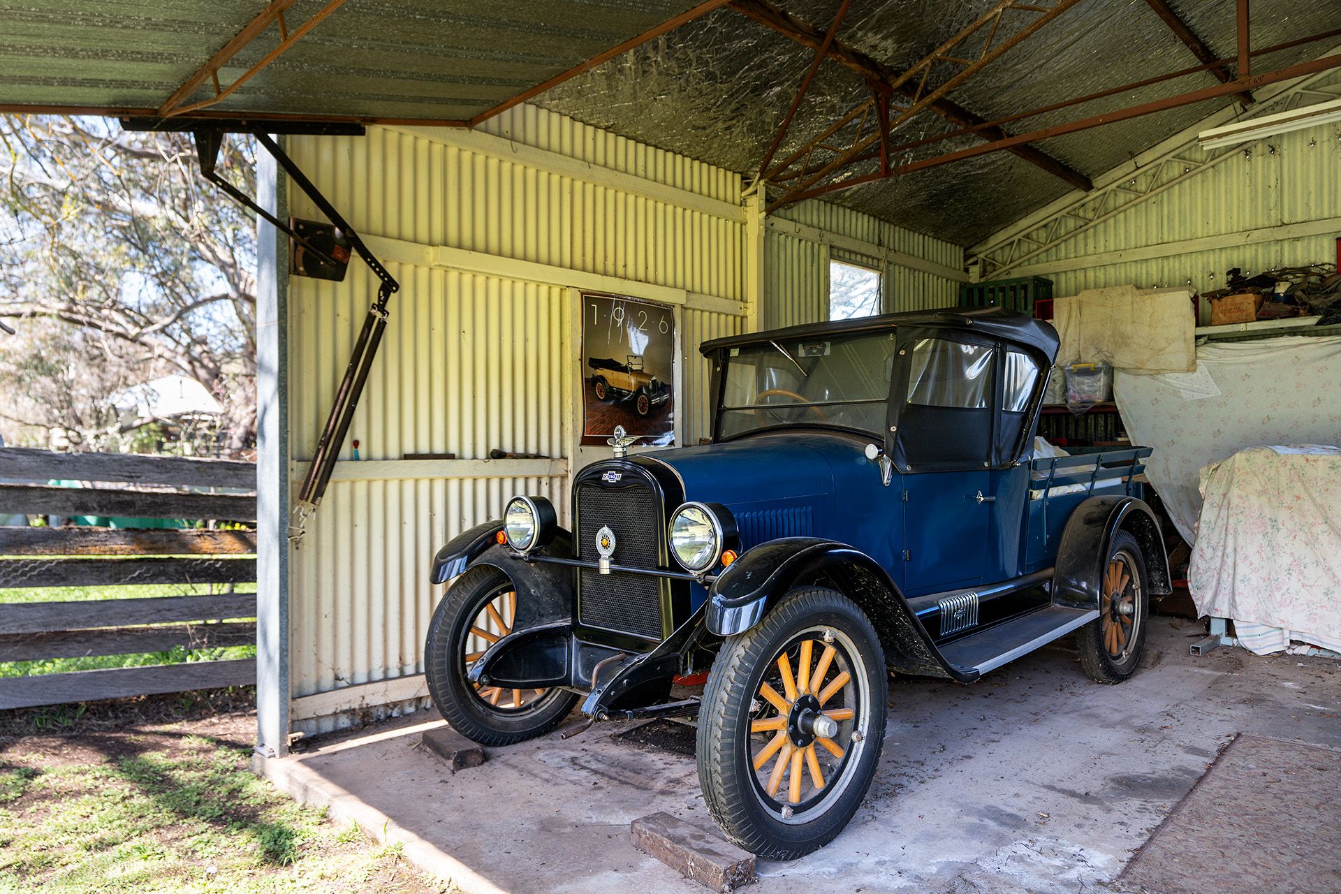 Set on a generous 857 sqm (approx) with views across the surrounding landscape, the home features a wide entry hall that leads to a front-facing living room with a gas heater inset into a period fireplace. Ornate plasterwork and double-hung windows add to the home's vintage appeal, while a split system ensures year-round comfort.