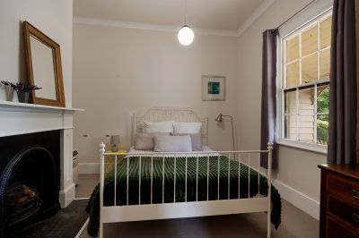 Inside, the home showcases classic Victorian features, including high ceilings and double-hung 6x6 windows. There are three bedrooms, each with a period fireplace, while the third bedroom reveals exposed brickwork and a French-style window. The north-facing front verandah welcomes the morning sun, and the central living space also enjoys a French-style window, adding to the home's charm.