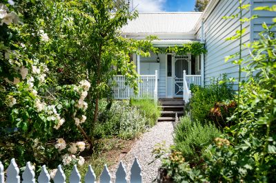 Set on an expansive 1814sqm (approx.), this character-filled Edwardian weatherboard home brings the feel of country living to the very heart of Castlemaine. Rich with Art Nouveau detailing, stained glass, timber fretwork and timeless craftsmanship, the home sits proudly amongst beautifully established cottage gardens, roses, deciduous trees and meandering pathways.