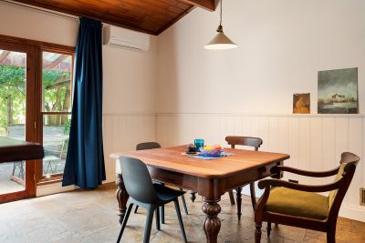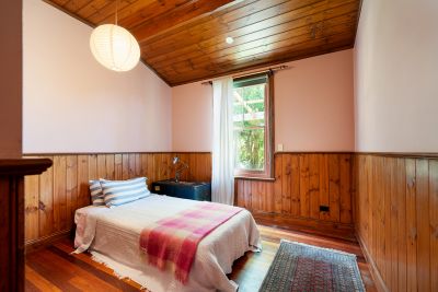 Period features shine throughout: timber floorboards, dado pine walling, timber sash windows, high ceilings and every window framing a garden outlook.