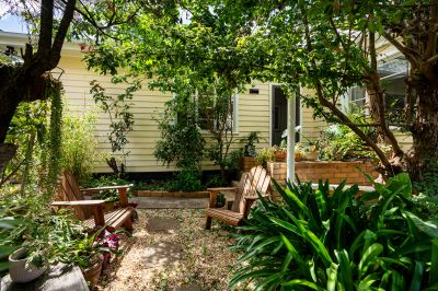 Set back from the street and privately nestled behind an established garden on approximately 669sqm, the property's classic weatherboard façade gives little away, but step inside, and you will find a home full of comfort and considered details like striking architraves, generous steel windows, wool carpets and a crisp white interior.