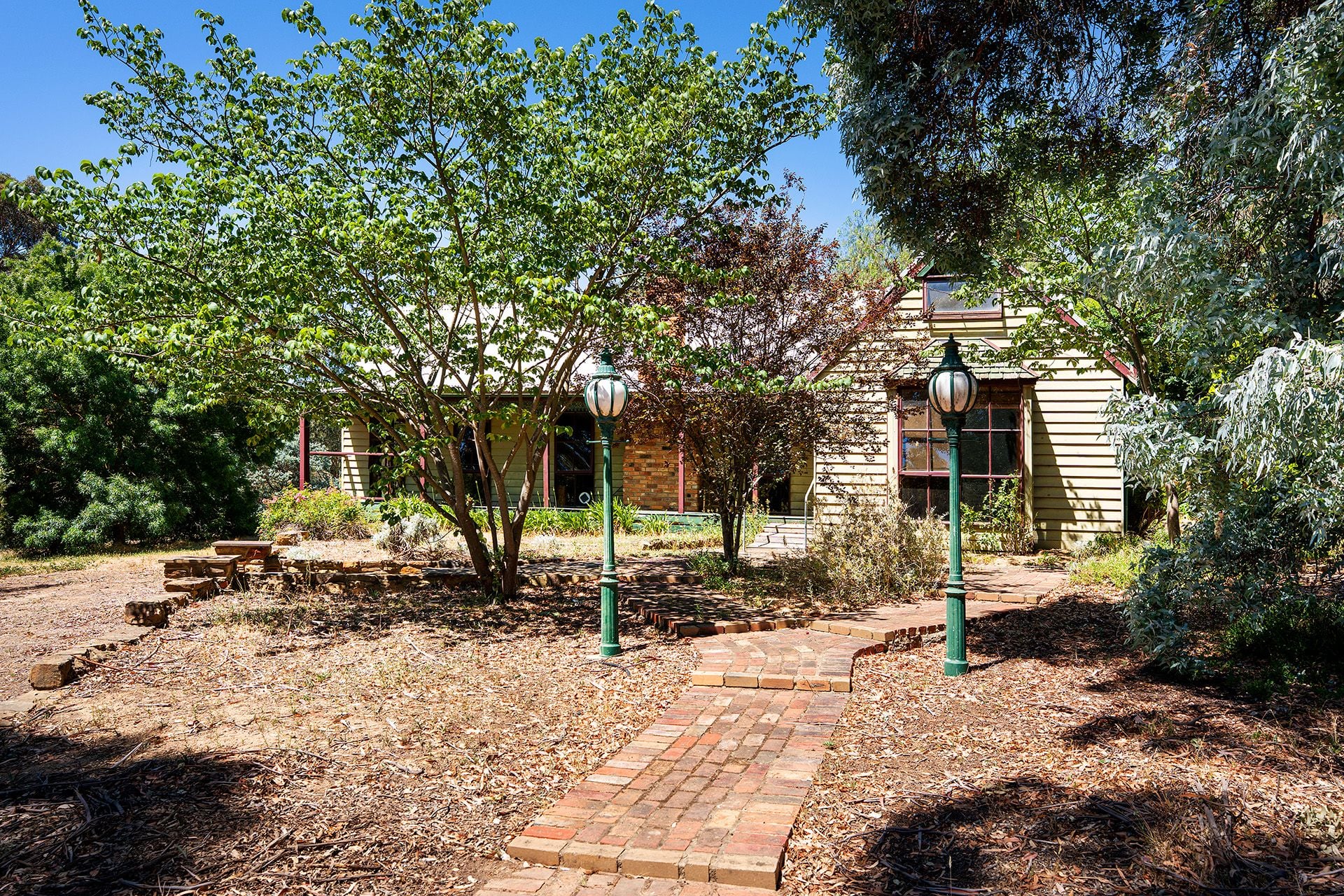 Comfort is assured with evaporative cooling, a split system, a gas heater, and solar hot water. Outside, the grounds are a true highlight: over an acre of space with a mix of native and deciduous ornamental trees, stone walling, and a circular driveway leading to a large garage and carport.