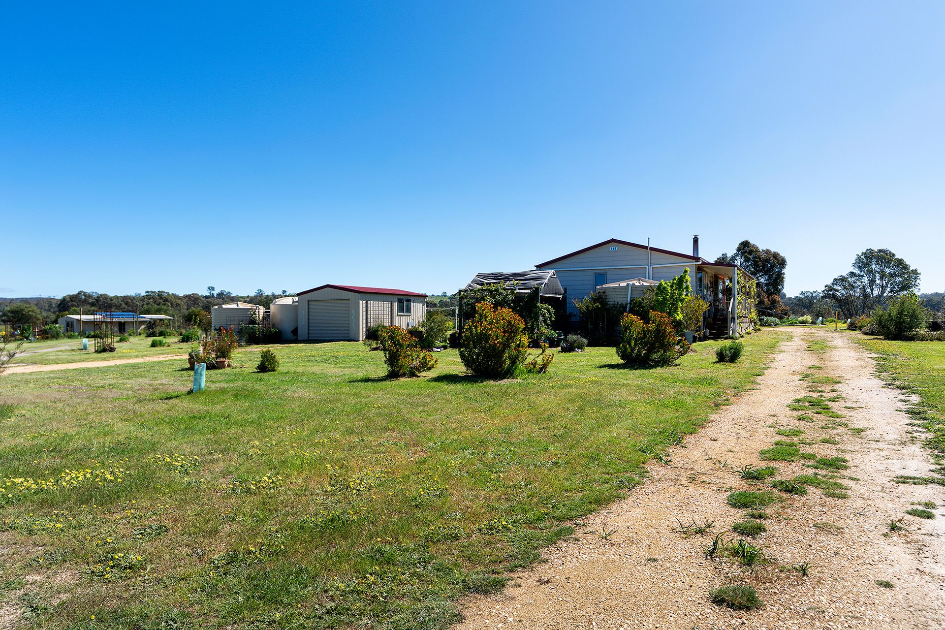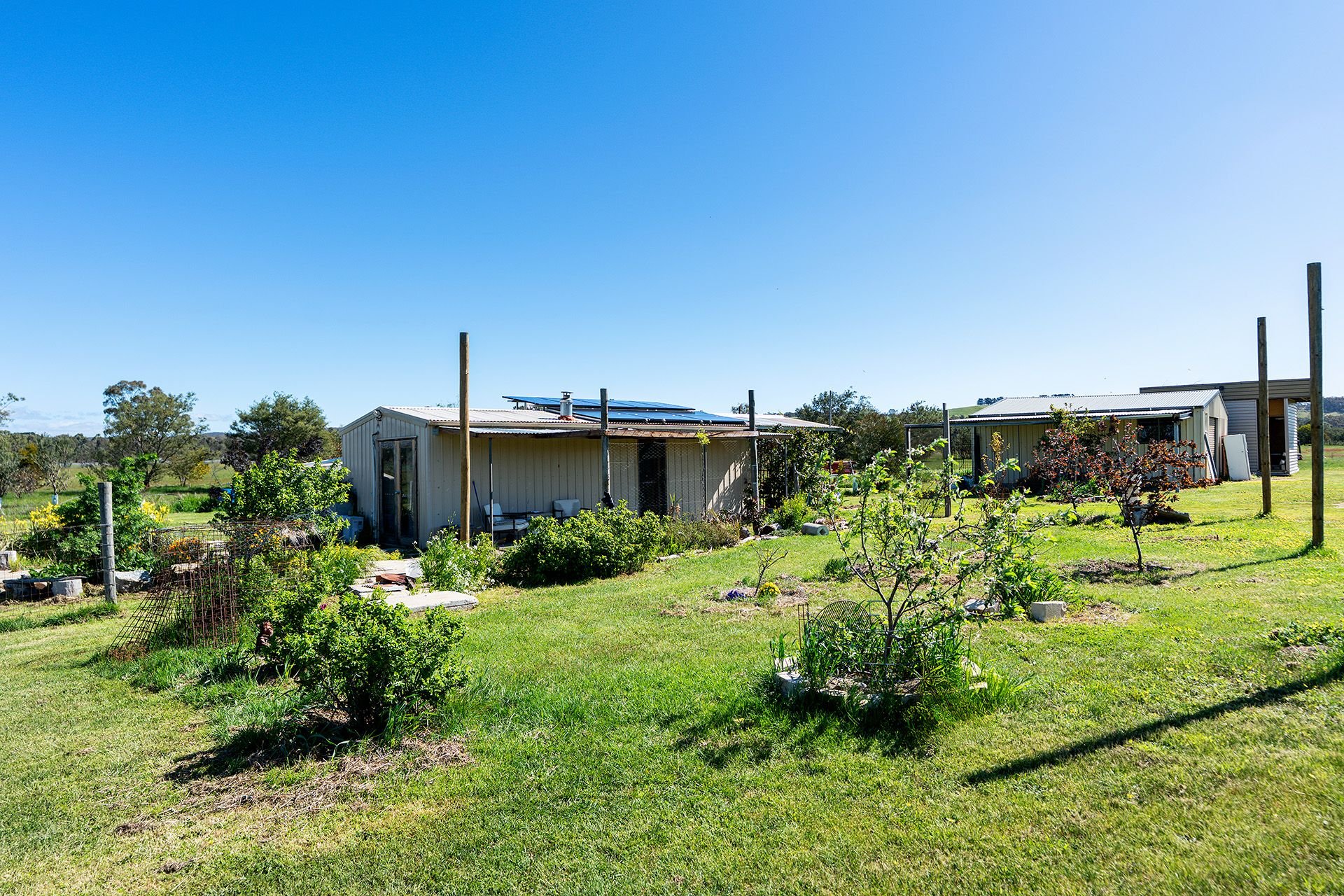 > Chook pens, ornamental gardens, veggie beds, and numerous water tanks-perfect for self-sufficiency