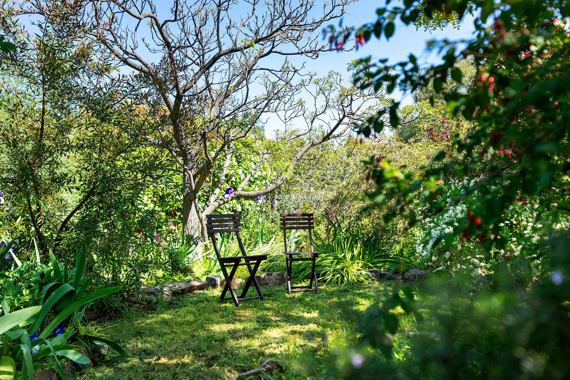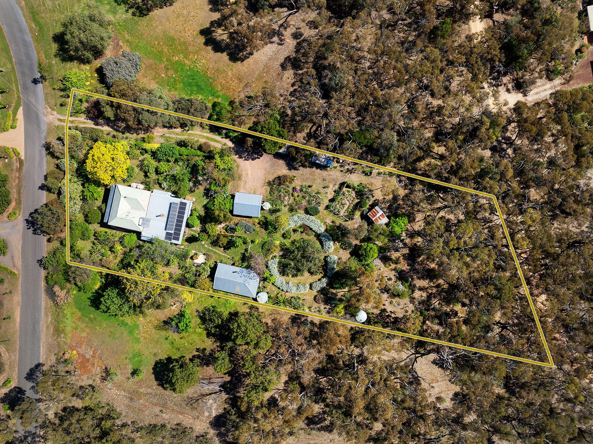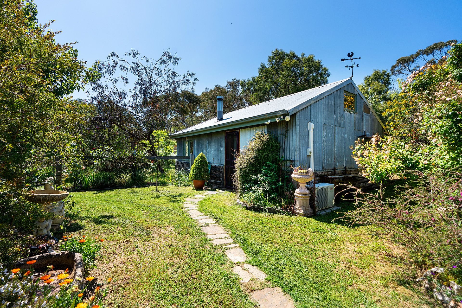 A 9.2m x 4.9m light-filled studio with a split system, a solid wood heater and a concrete floor is the perfect space for the artist, musician or guest accommodation. The property also has a 4.9m x 5.8m double carport, four sheds and five water tanks for the garden. With just over an acre, the rambling garden is a magnificent escape with established trees of Robina, Persian Witch Hazel, Chinese Elm and an array of perennials, roses and ornamental shrubs. The grounds include an enclosed veggie patch and fruit and citrus trees before the garden seamlessly merges with bushland.