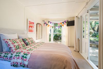 Adding to the property's appeal are two freestanding studios, each offering unique possibilities. One is ideal as a guest retreat or creative space, while the second, featuring a cathedral ceiling with exposed beams, a study nook, and storage, could serve as a home office or future pool house. Both enjoy garden outlooks and French doors that open to private terraces.