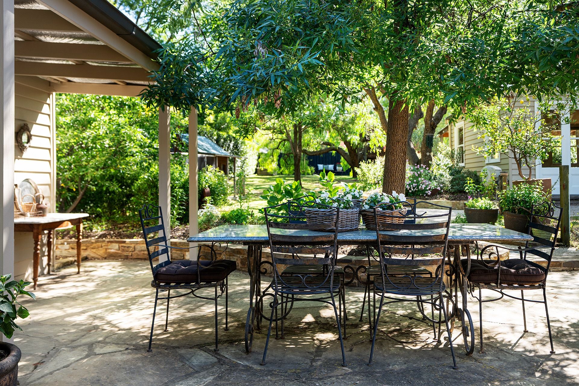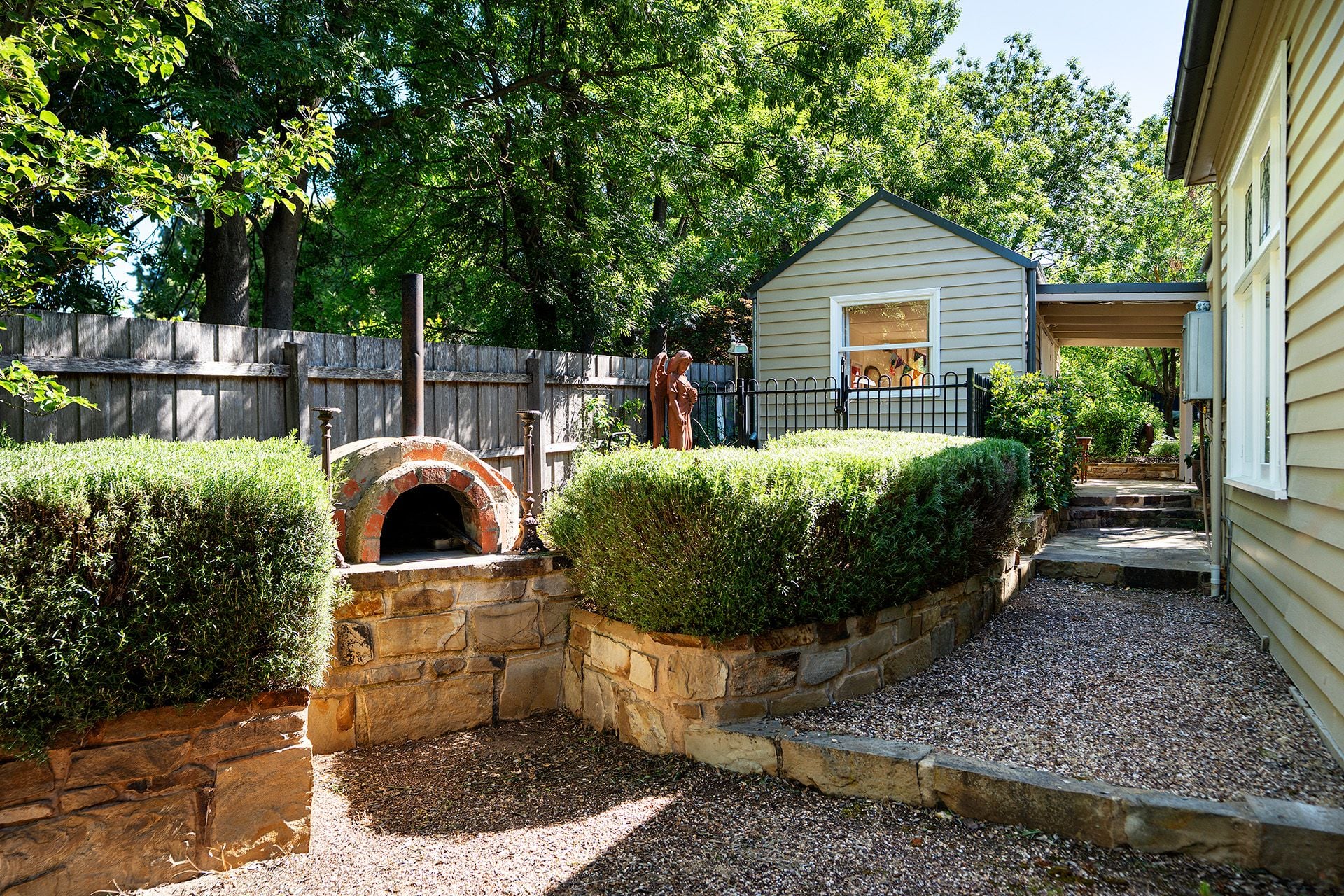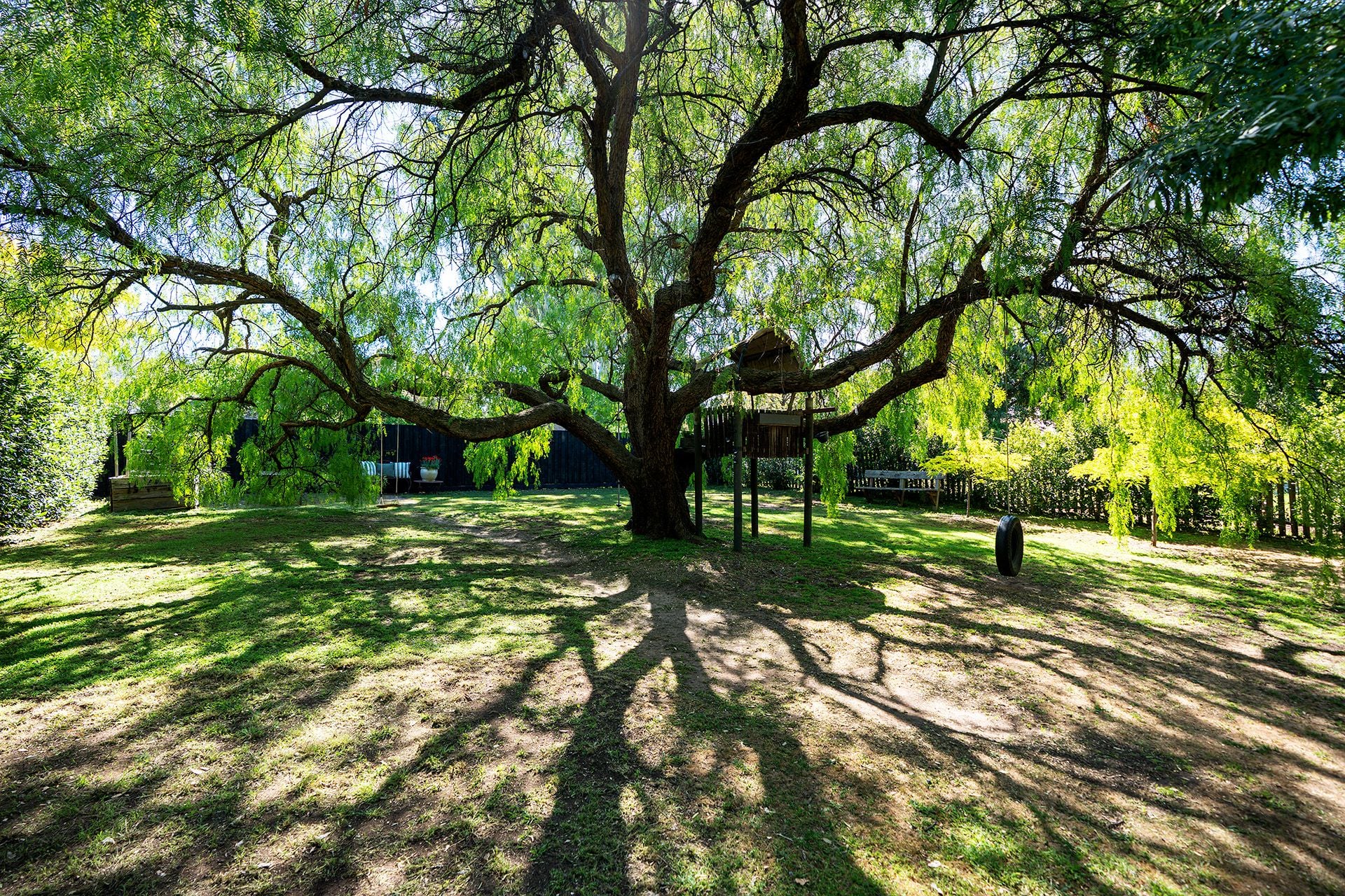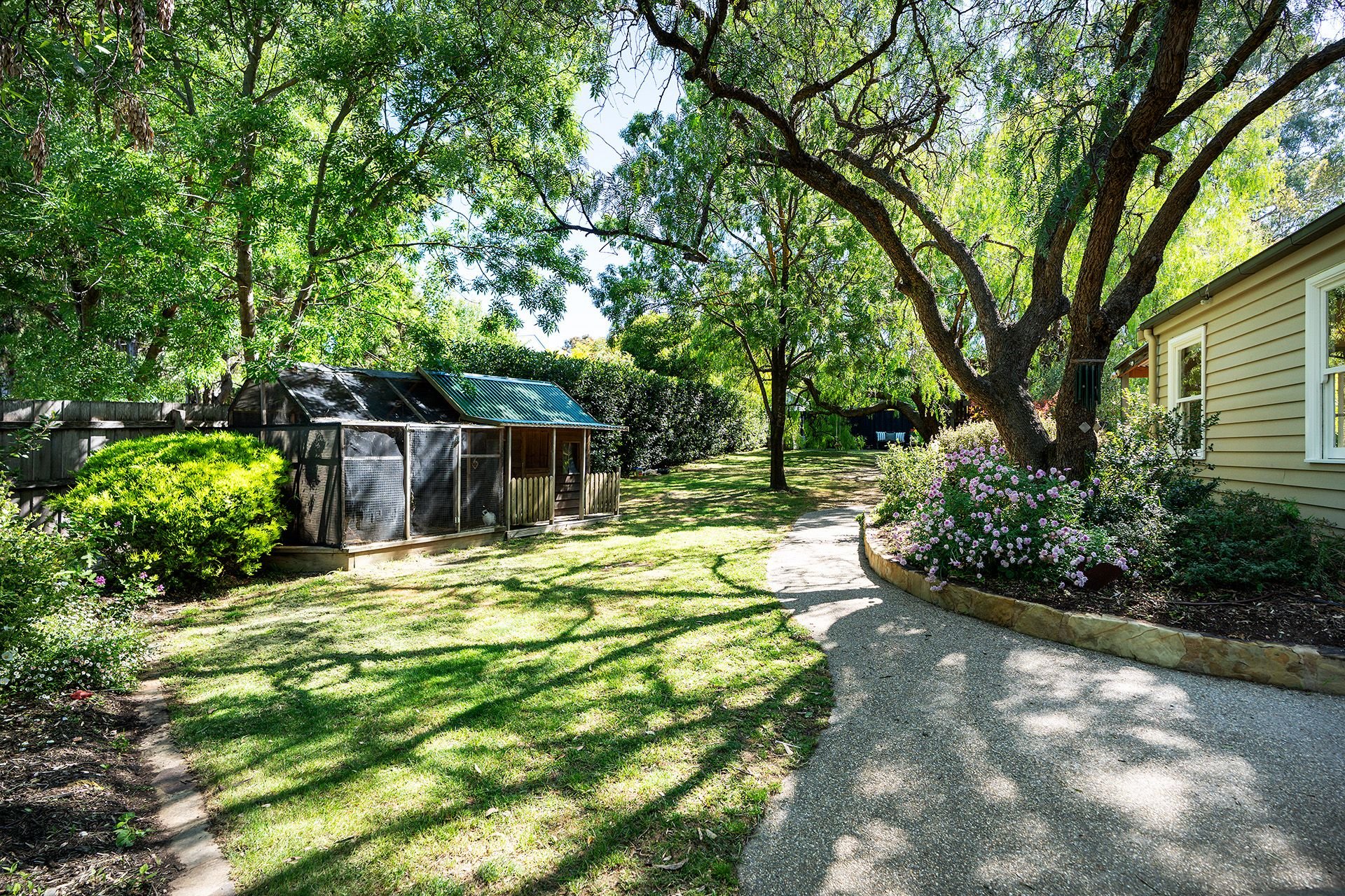 Beyond the home lies a garden that feels like a private estate. Brick paths wind through clipped box hedging and ornamental trees, while a majestic peppercorn tree stands sentinel, complete with a quintessential swing and cubby house. A bay tree hedge frames the space, and the park-like setting invites relaxation and play. There is ample parking and scope to add a pool (STCA) for the ultimate country luxury.