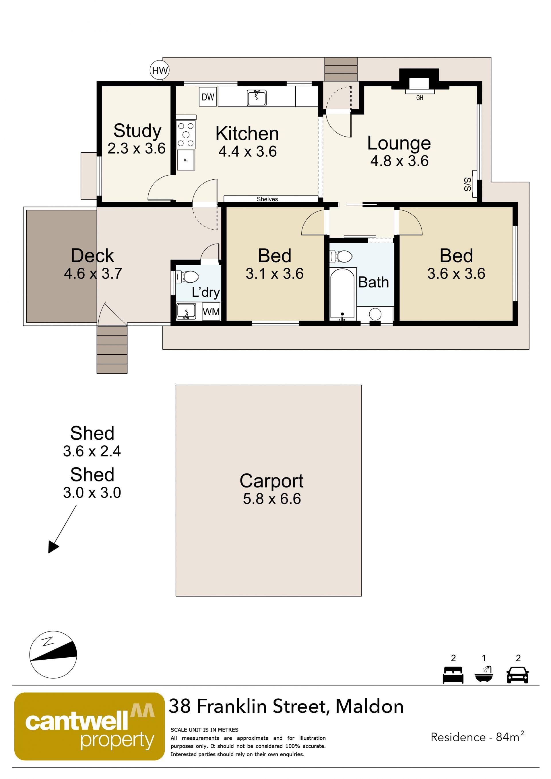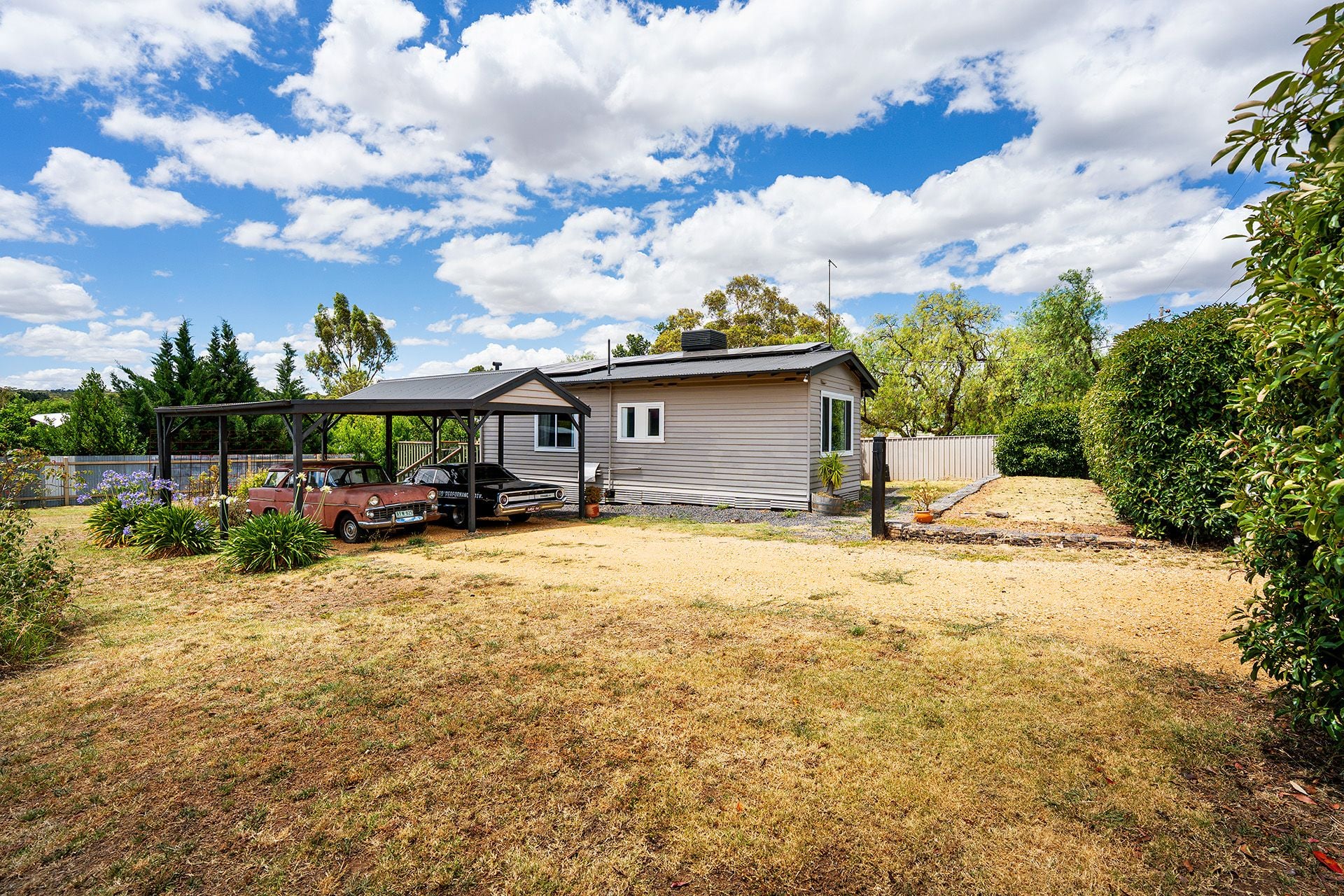 Set on approximately 900sqm, the fully fenced property includes a 5.6m x 6.6m carport, two sheds, a water tank, rock gabions, citrus and nectarine trees, established hedging, a Hills Hoist and low-maintenance garden spaces. The land provides ample room for outdoor living, gardening and further customisation.