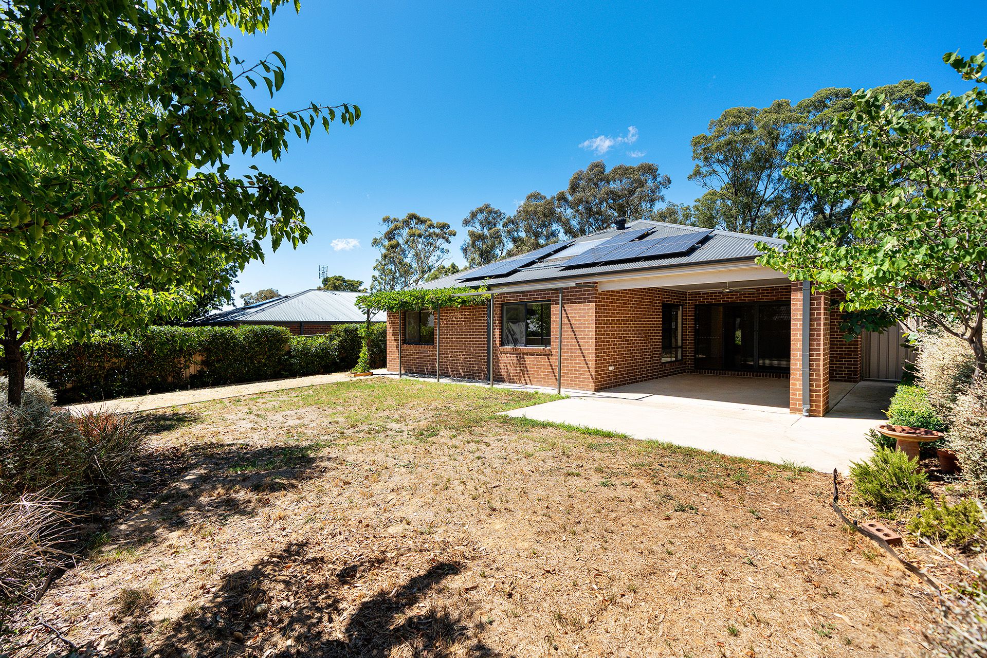 The main bedroom includes a walk-in robe and ensuite, while three additional bedrooms each feature built-in robes. The central bathroom offers a bath, shower, vanity, and a separate toilet. The laundry has external access. Climate control is catered for with ducted heating and evaporative cooling, complemented by an integrated solar system to keep energy costs in check. The home has an established garden featuring a mix of ornamental and native plants, and the fully fenced back garden provides a secure space for children and pets to play.