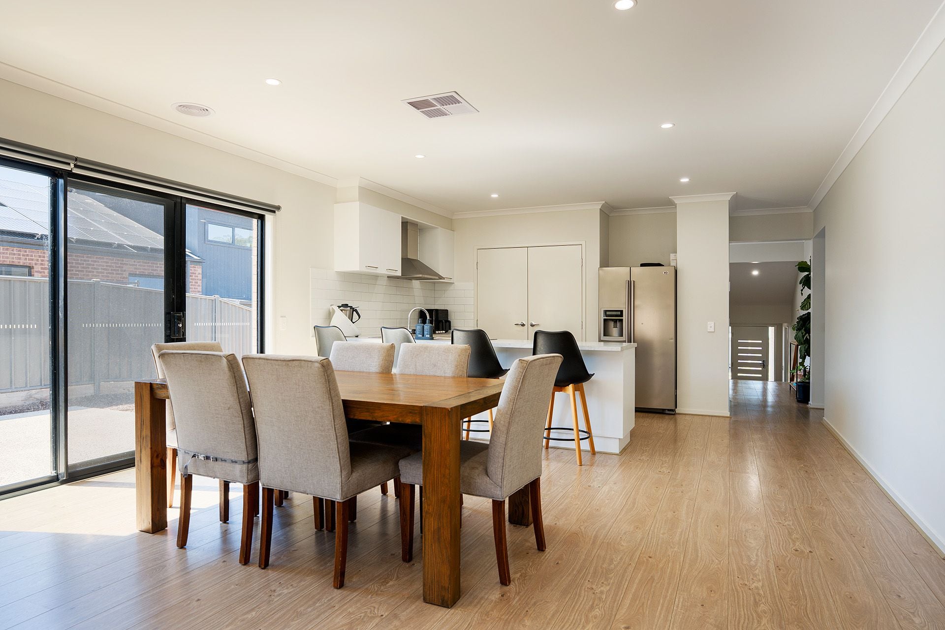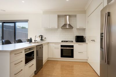 Designed for families, the home features a large open-plan kitchen, dining and living area that captures abundant northern light and flows seamlessly to an outdoor patio, ideal for entertaining and everyday relaxation. The kitchen features a wrap-around bench for casual dining, a gas cooktop, an undermount oven, a dishwasher, and a pantry, providing both functionality and a welcoming central hub for the home.
