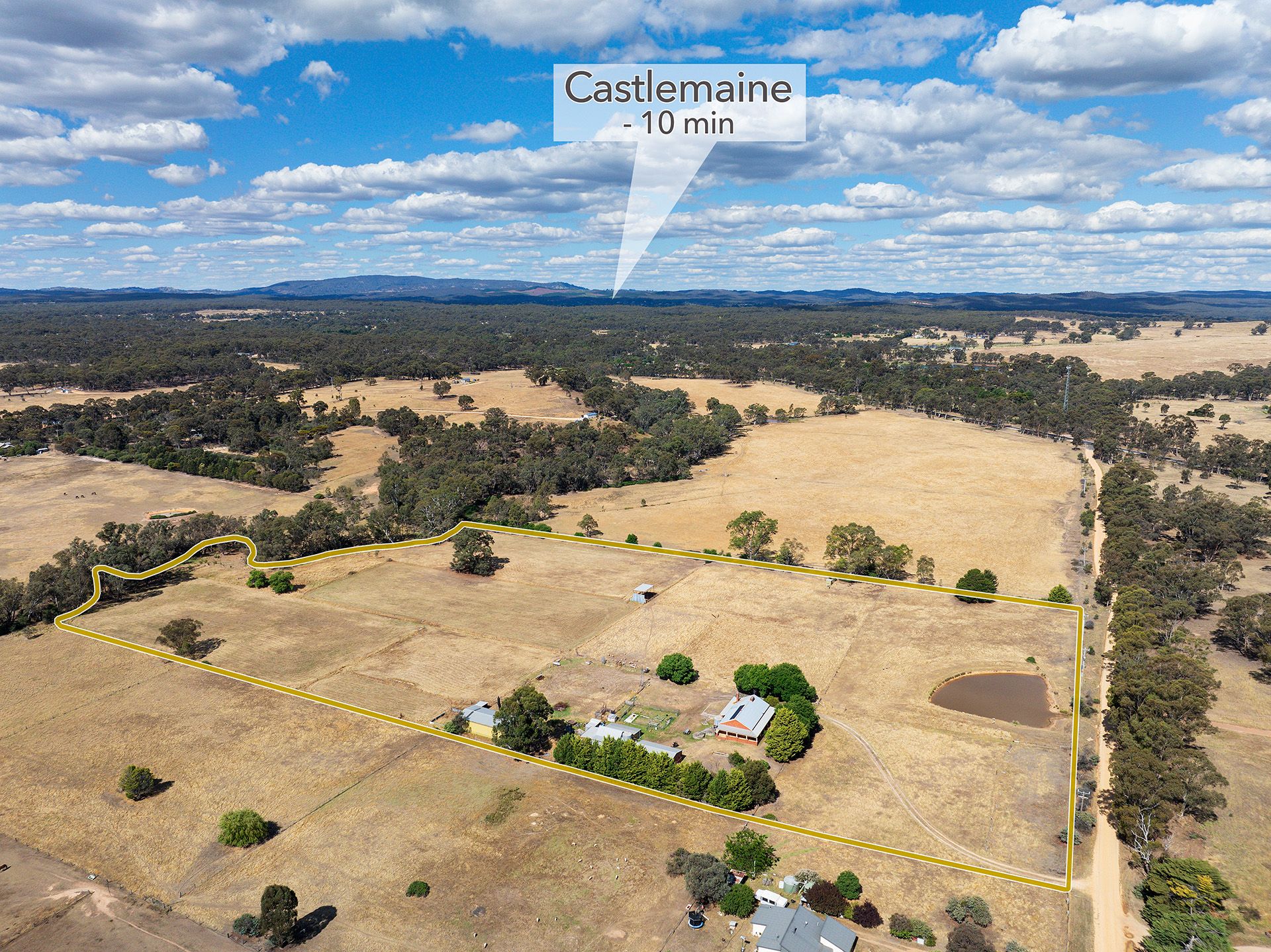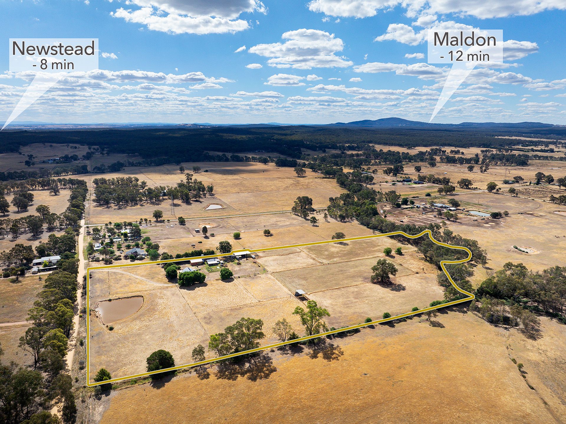 Nestled in a quiet rural setting, this 1981 solid brick three-bedroom Californian-style bungalow set back from the street offers farm-style living and town convenience. Set on approximately 18.7 acres, the property is perfect for those seeking space, privacy, land with fenced paddocks, a large dam, and ample shedding for farming or recreational use. Located just 10 minutes from Castlemaine, 8 minutes from Newstead, and 12 minutes from Maldon, this property provides the best of both worlds – country living with easy access to local amenities, including the Steiner School.