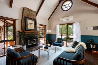 Encircled by native trees and vibrant birdlife, the home effortlessly marries rustic charm with contemporary comforts.